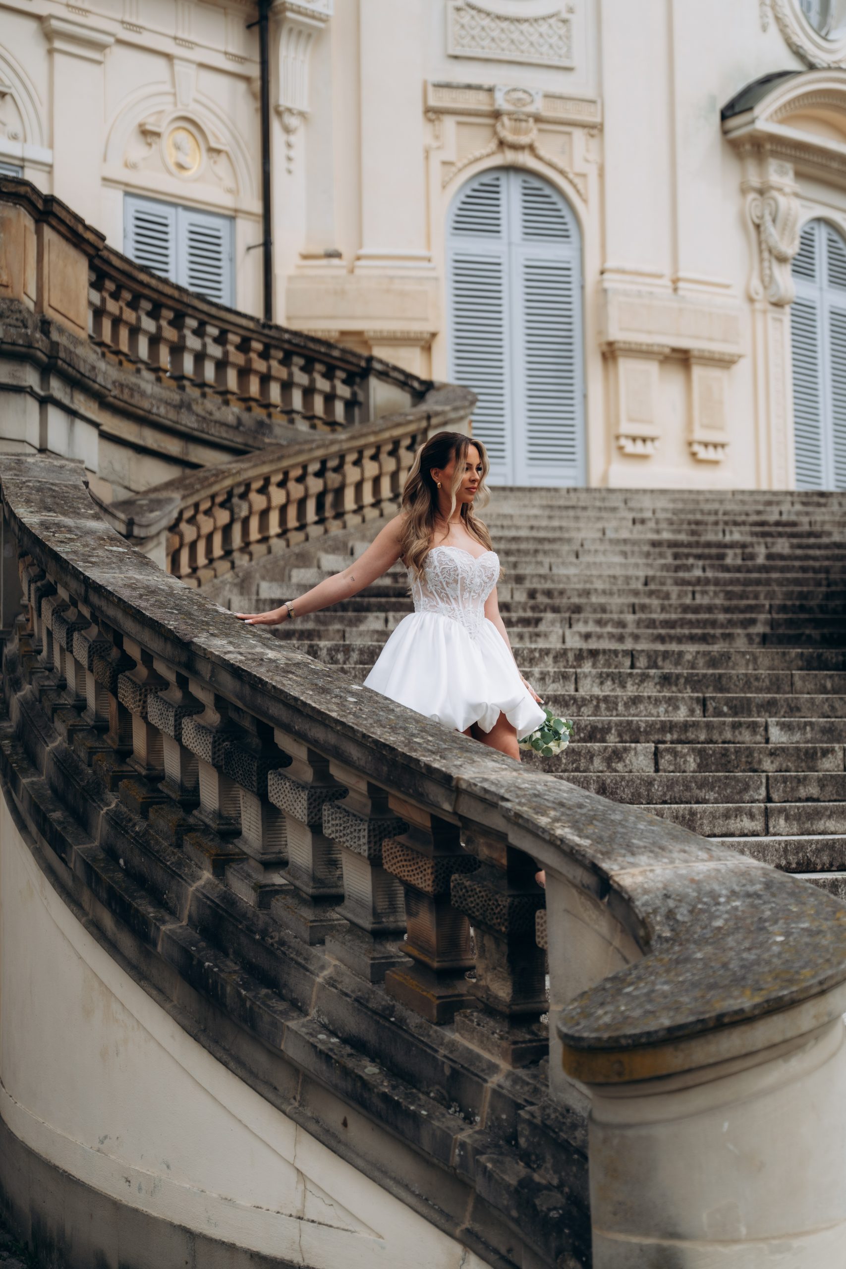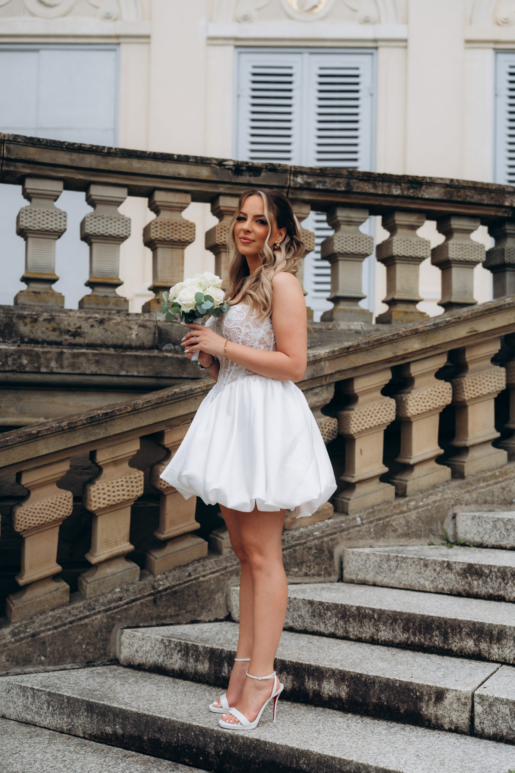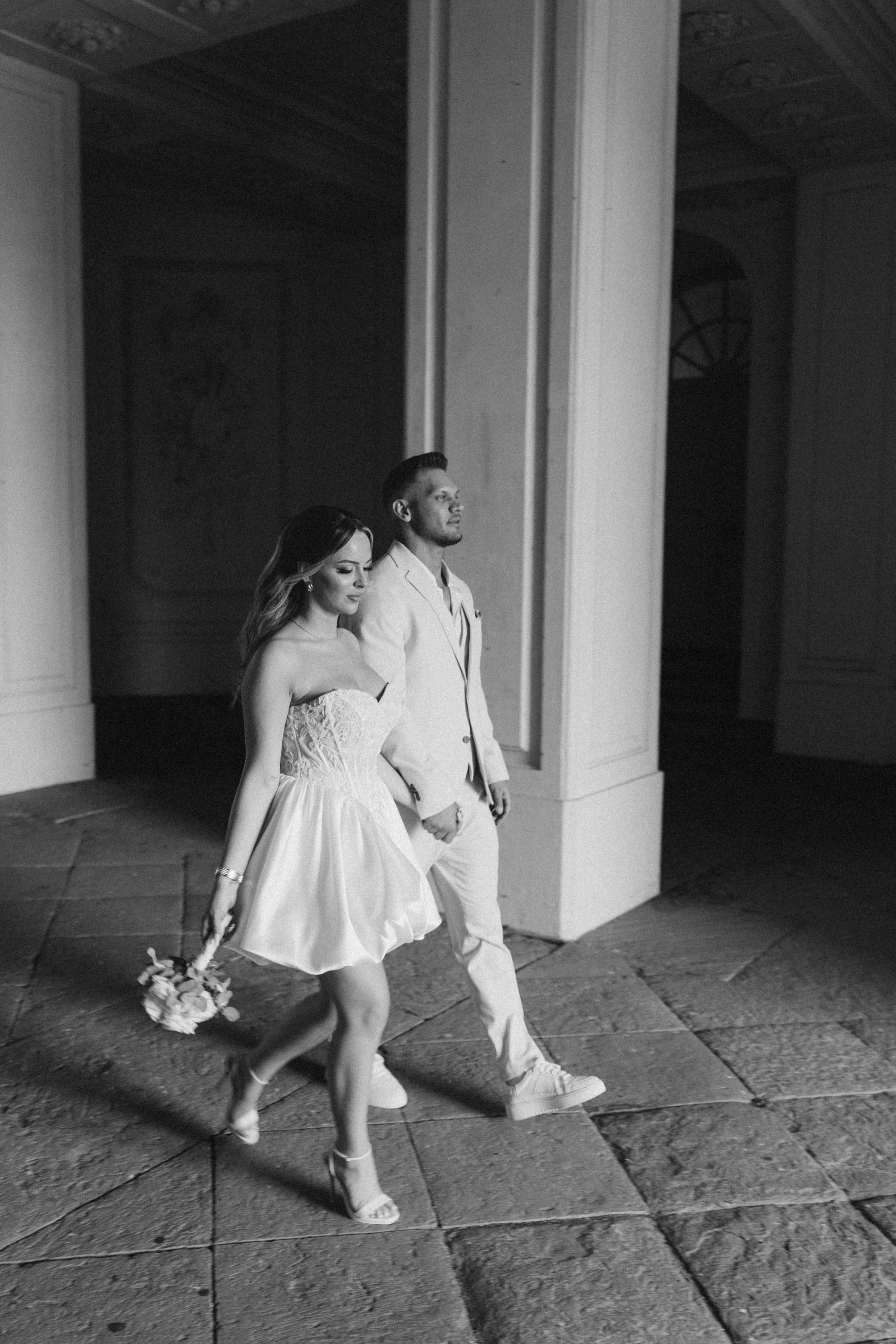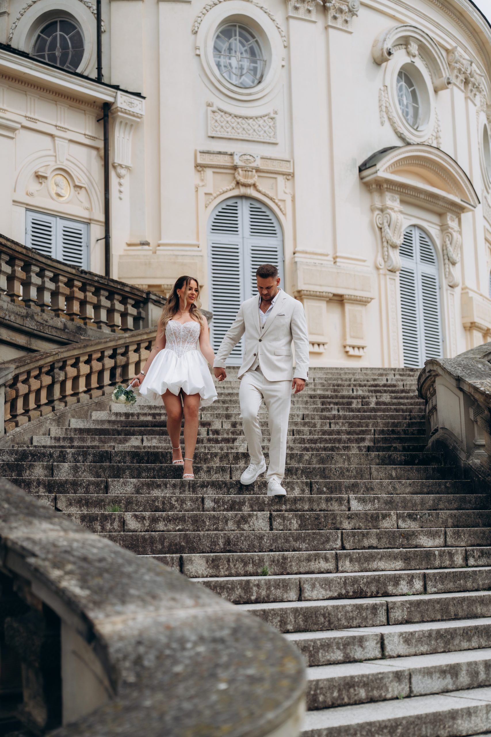 Die klare Fassade, die symmetrischen Treppenanlagen und die offene Aussicht über Stuttgart schaffen ideale Bedingungen für elegante Hochzeitsbilder. Gerade nach einer standesamtlichen Trauung bietet sich das Schloss Solitude als ruhiger und gleichzeitig repräsentativer Ort für Portraits an.
