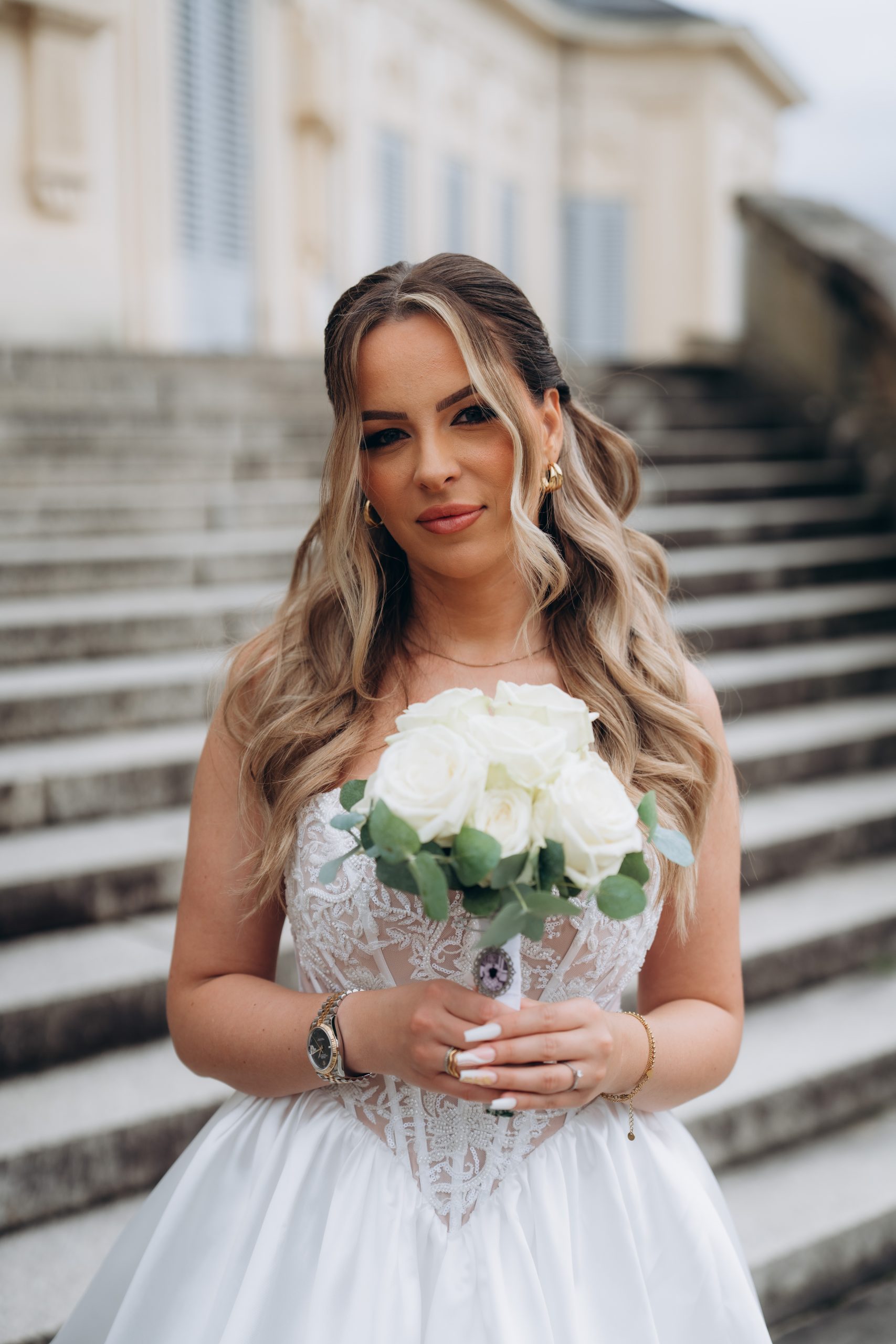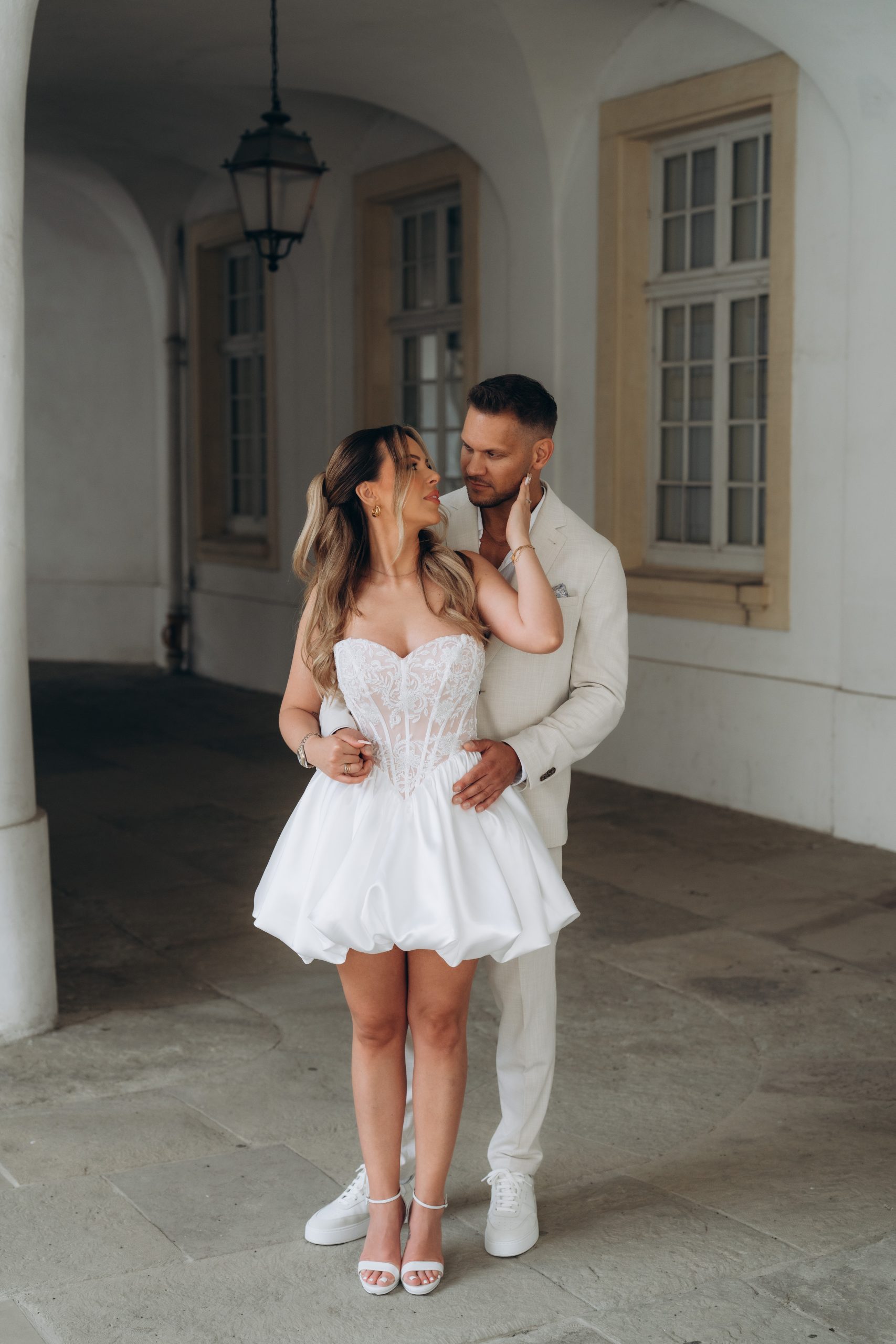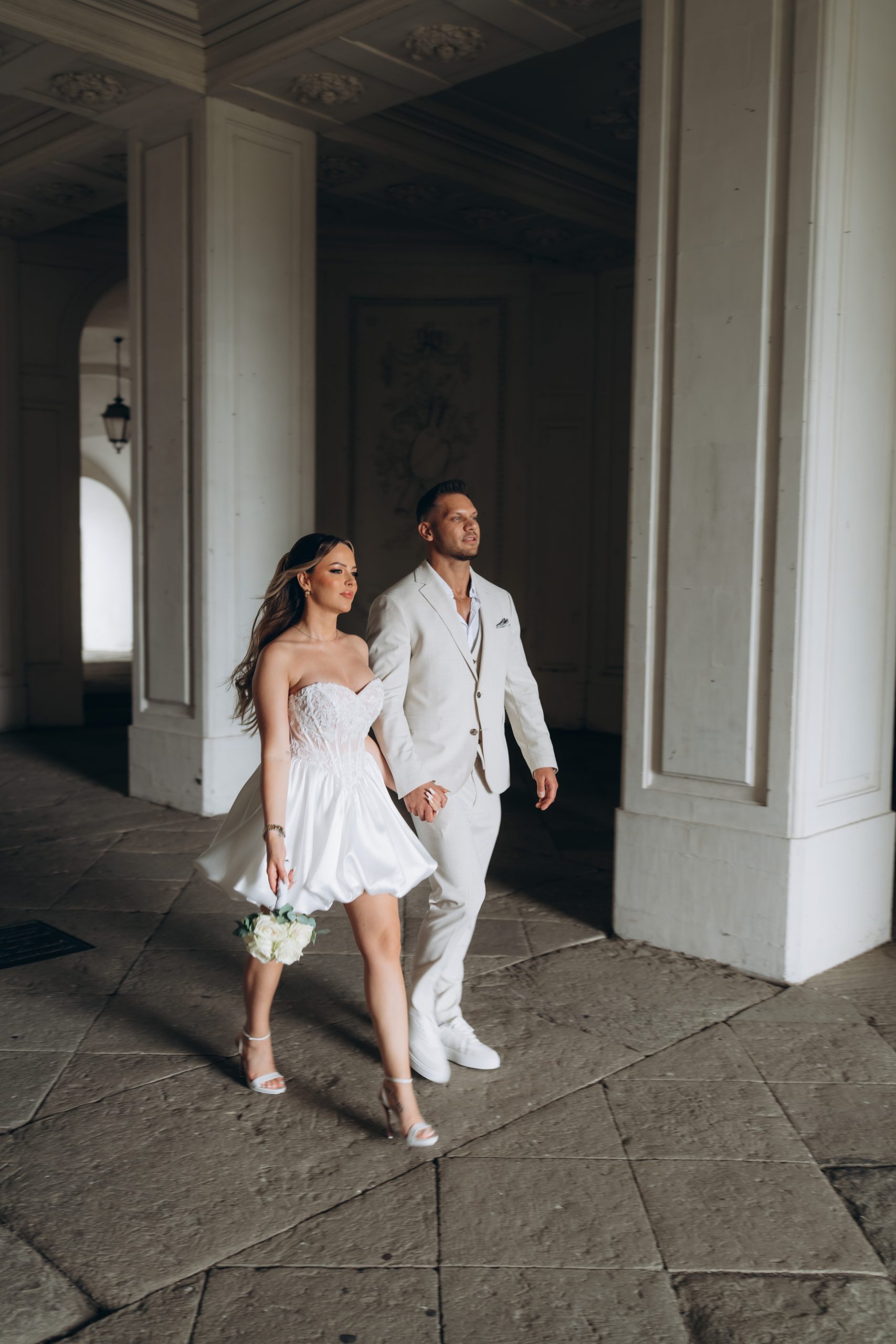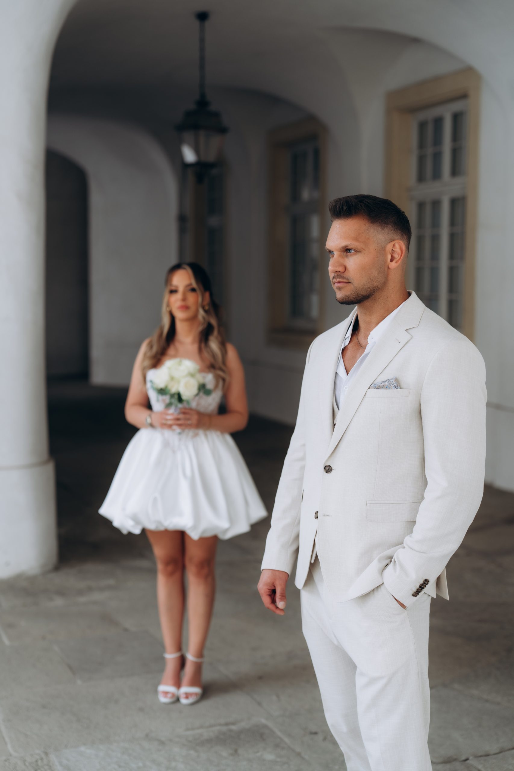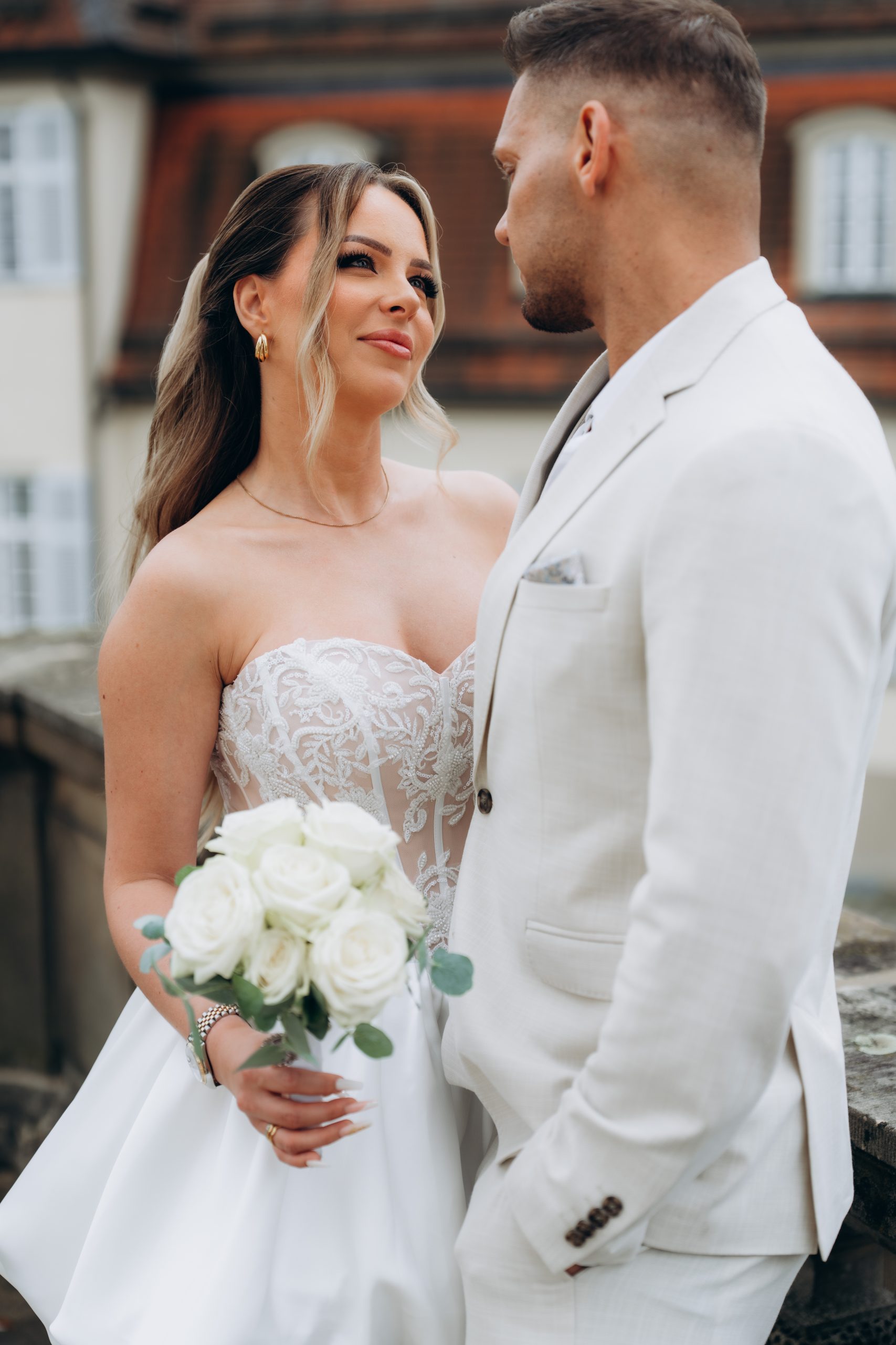 Zwischen klassischer Architektur und natürlichem Licht entstanden zeitlose Aufnahmen, die sowohl modern als auch stilvoll wirken. Dabei nutzten wir die unterschiedlichen Perspektiven rund um das Schloss – von der Frontansicht bis zu ruhigeren Bereichen mit Blick ins Grüne.