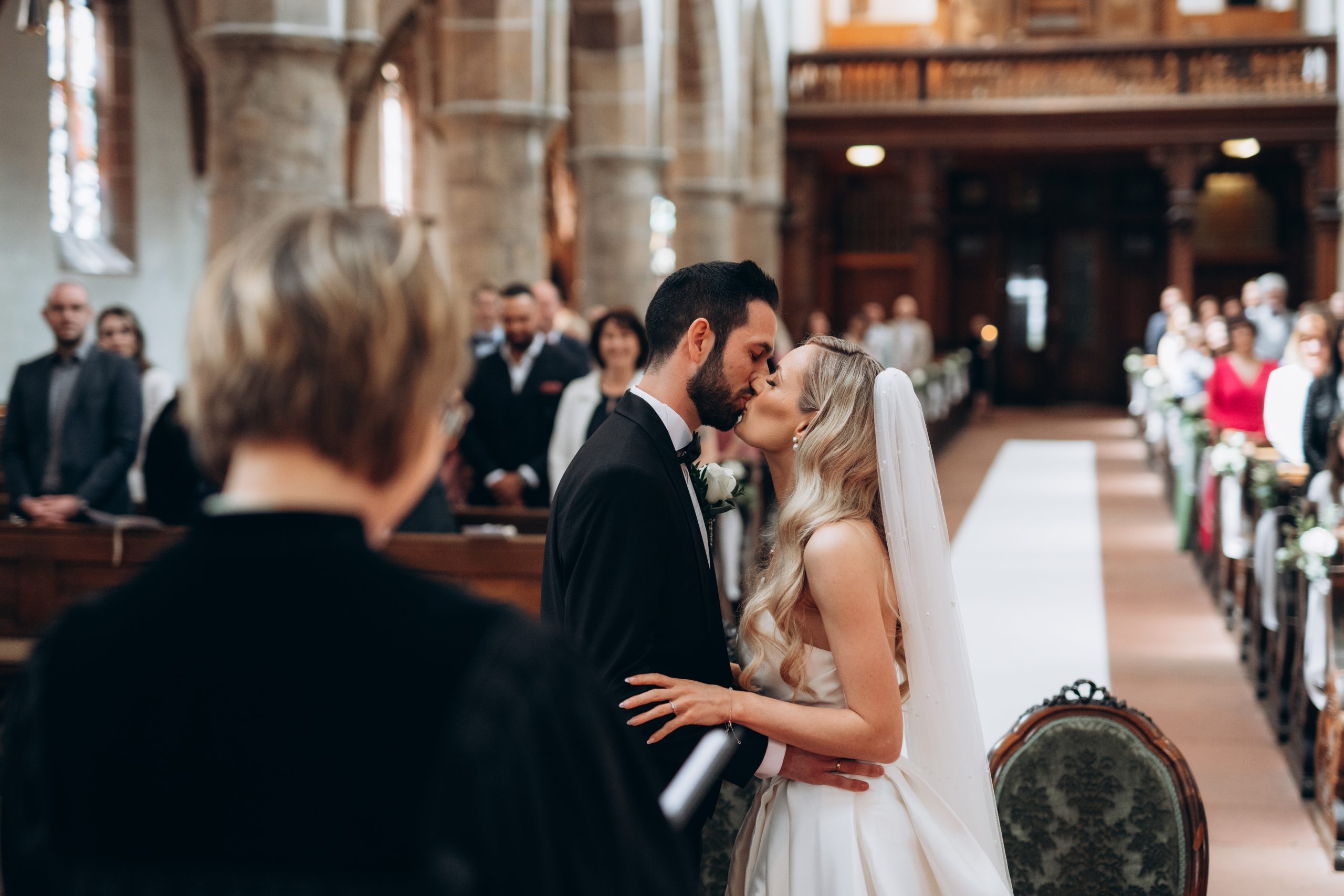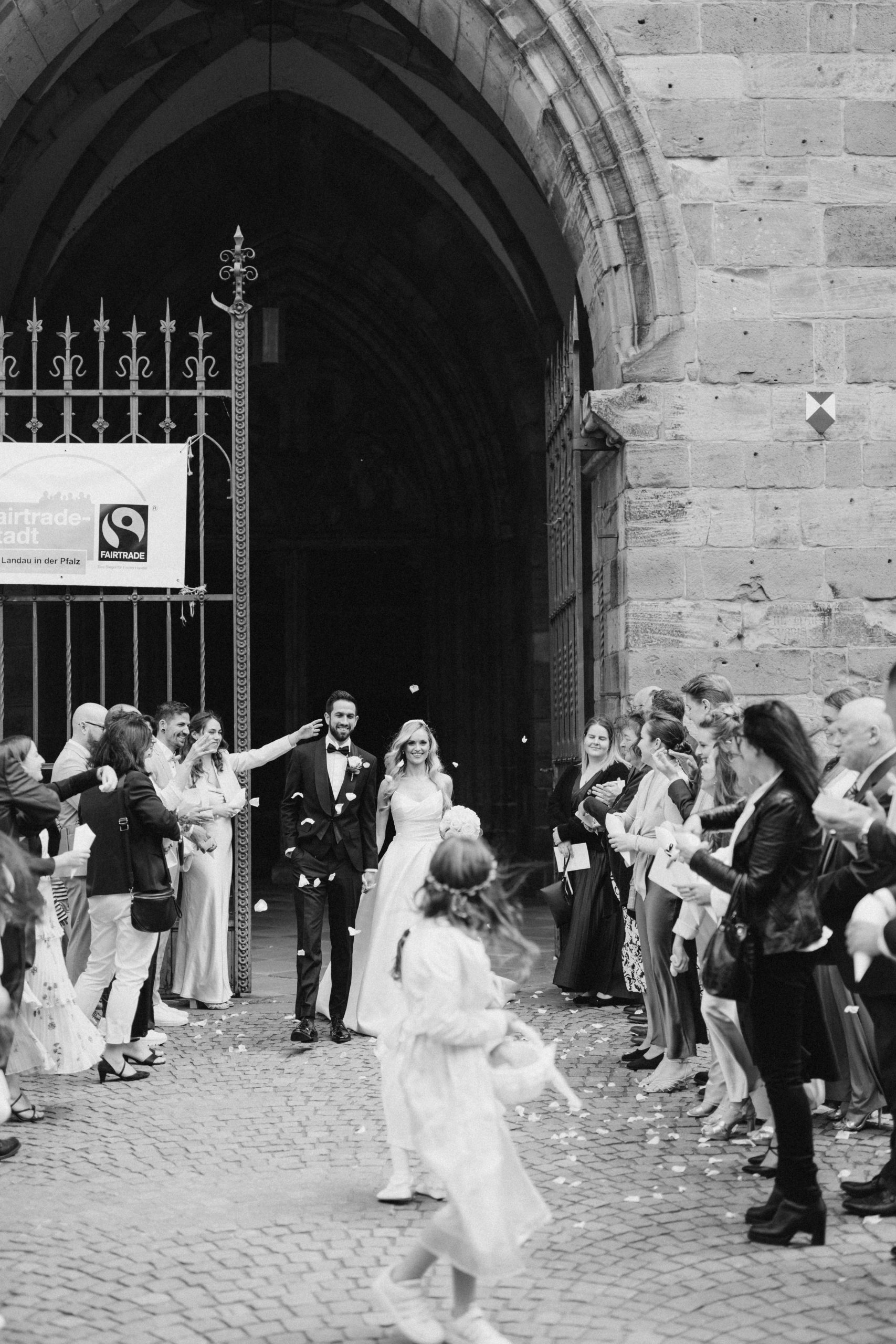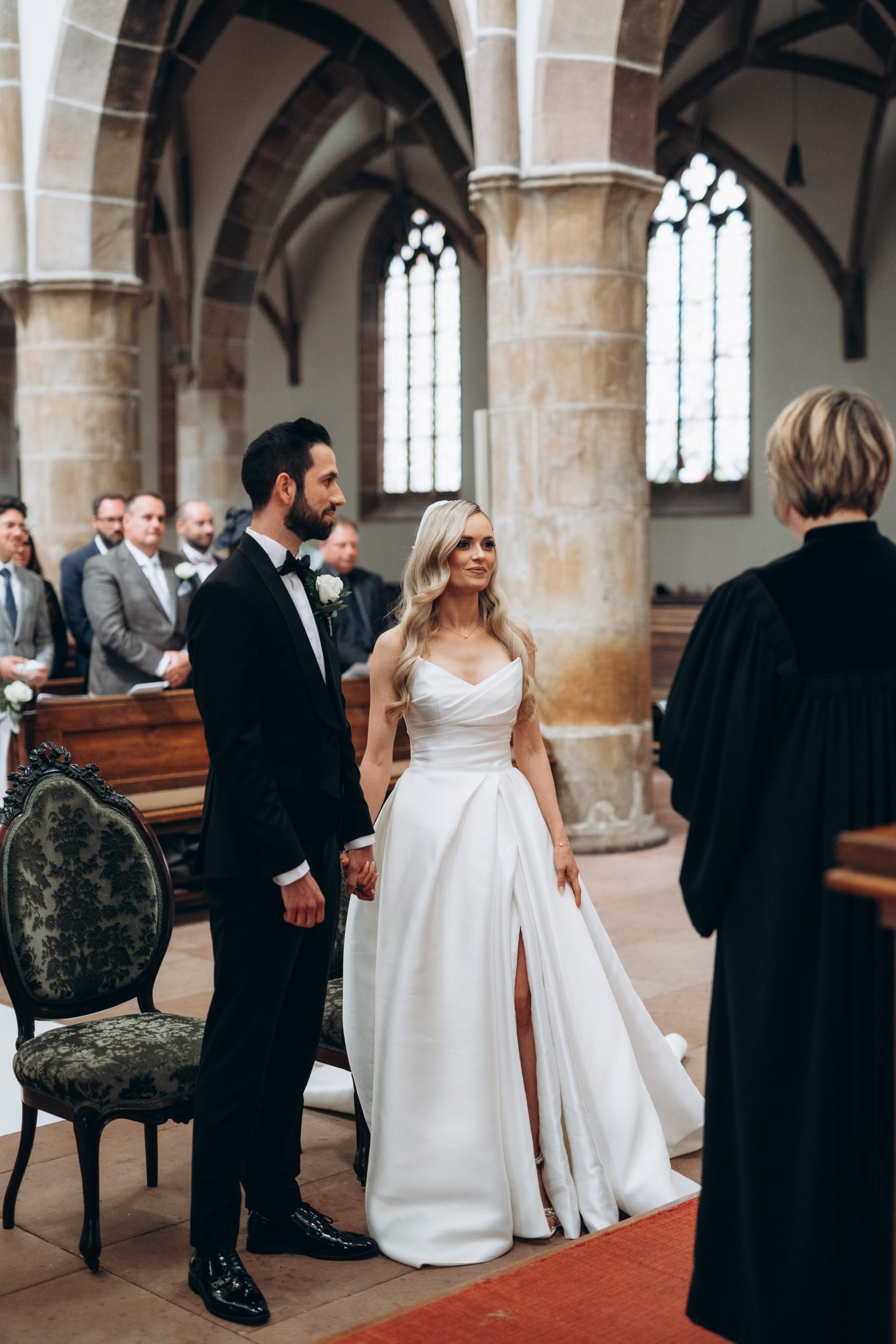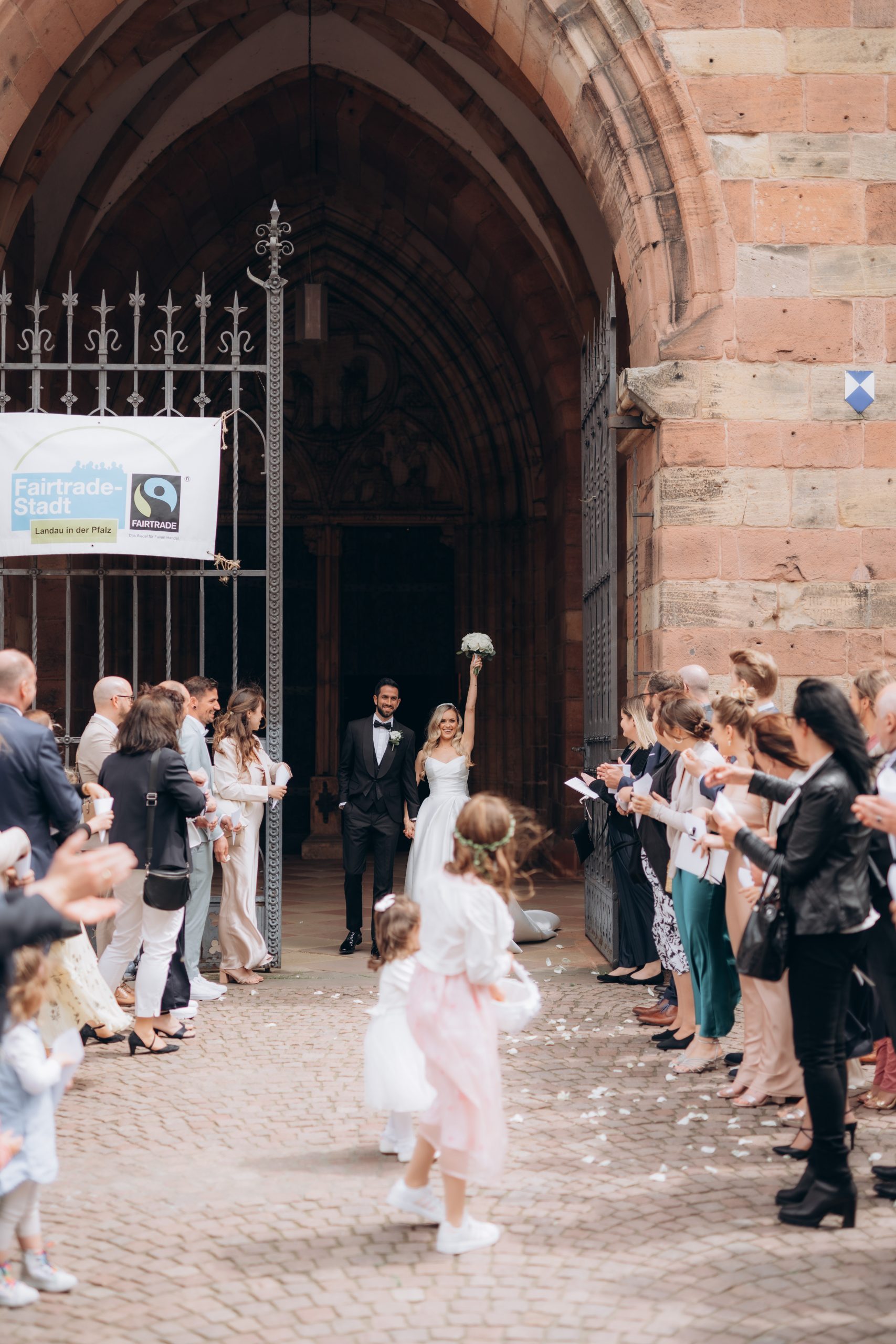 Von dort ging es weiter zur Stiftskirche in Landau. Die kirchliche Trauung war klassisch, emotional und voller echter Momente. Zwischen hohen Mauern und festlicher Atmosphäre gaben sich die beiden ihr Ja-Wort – begleitet von Familie und engen Freunden.