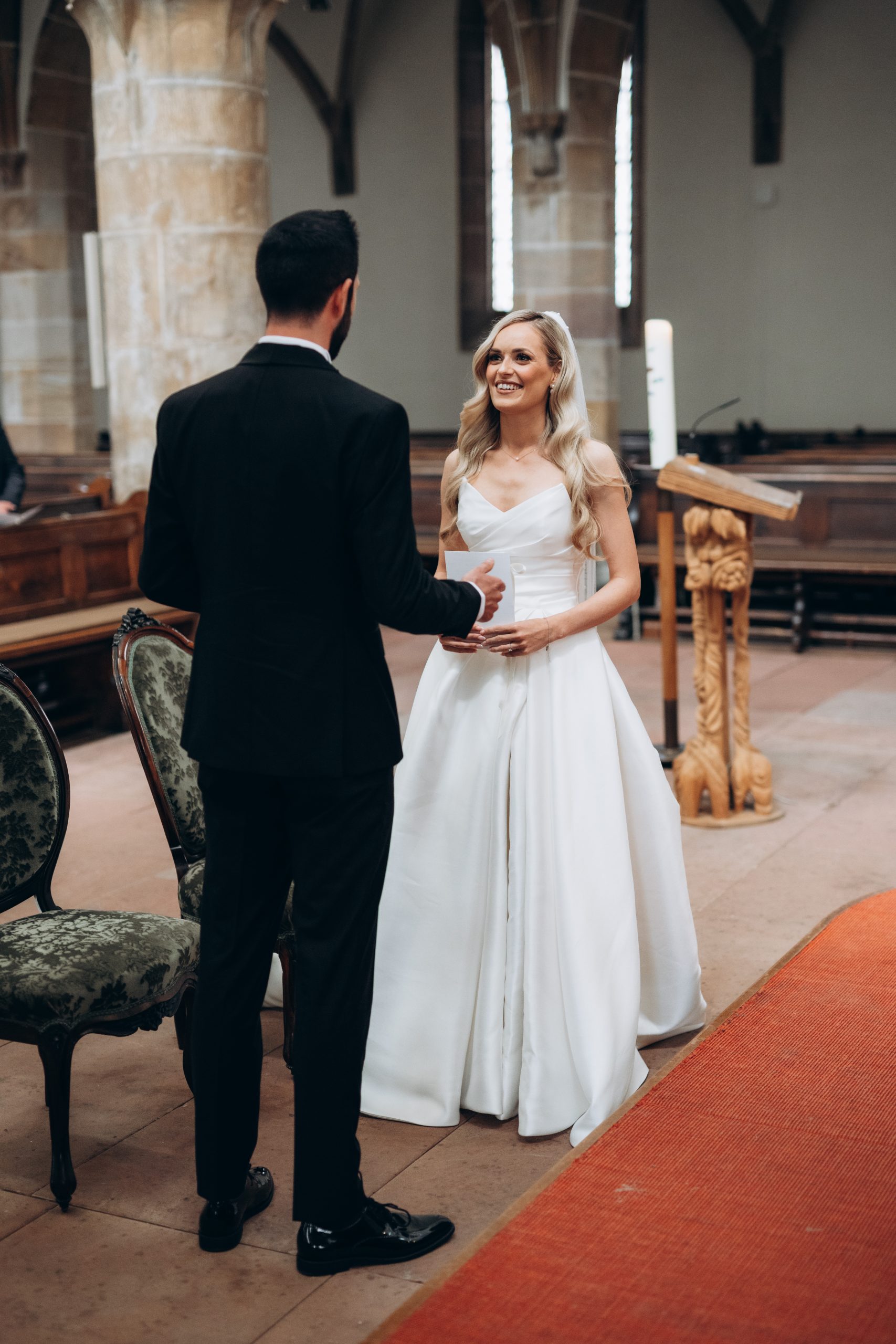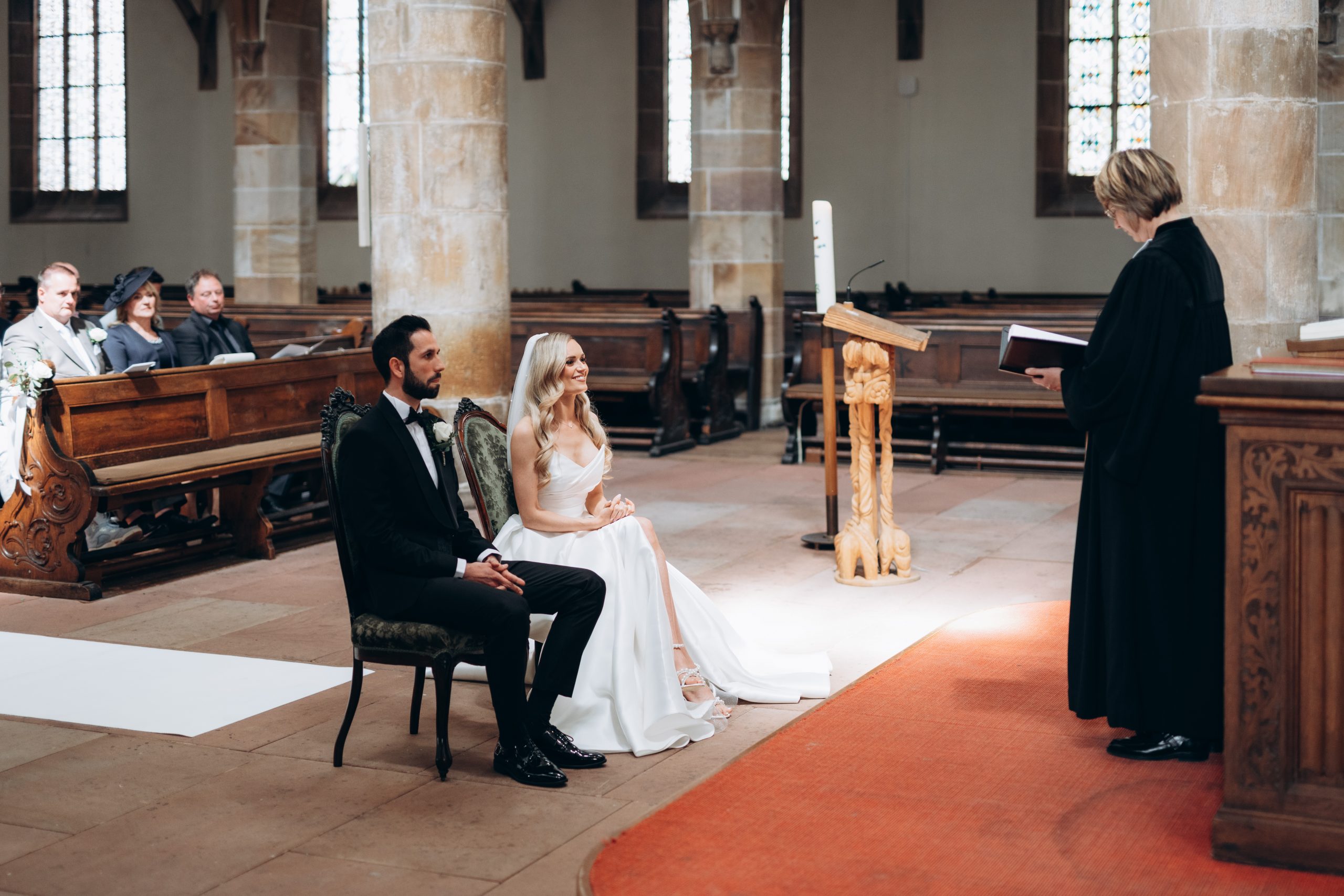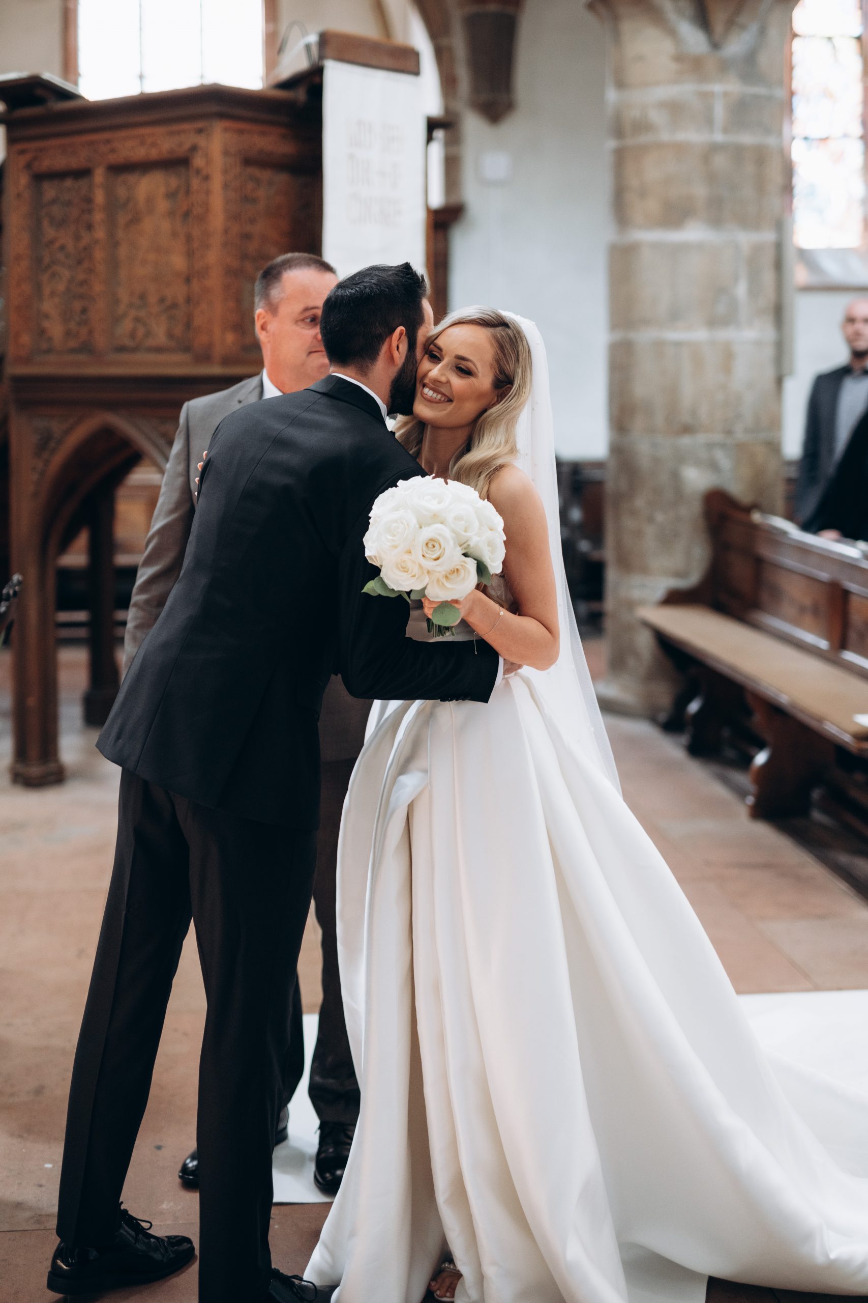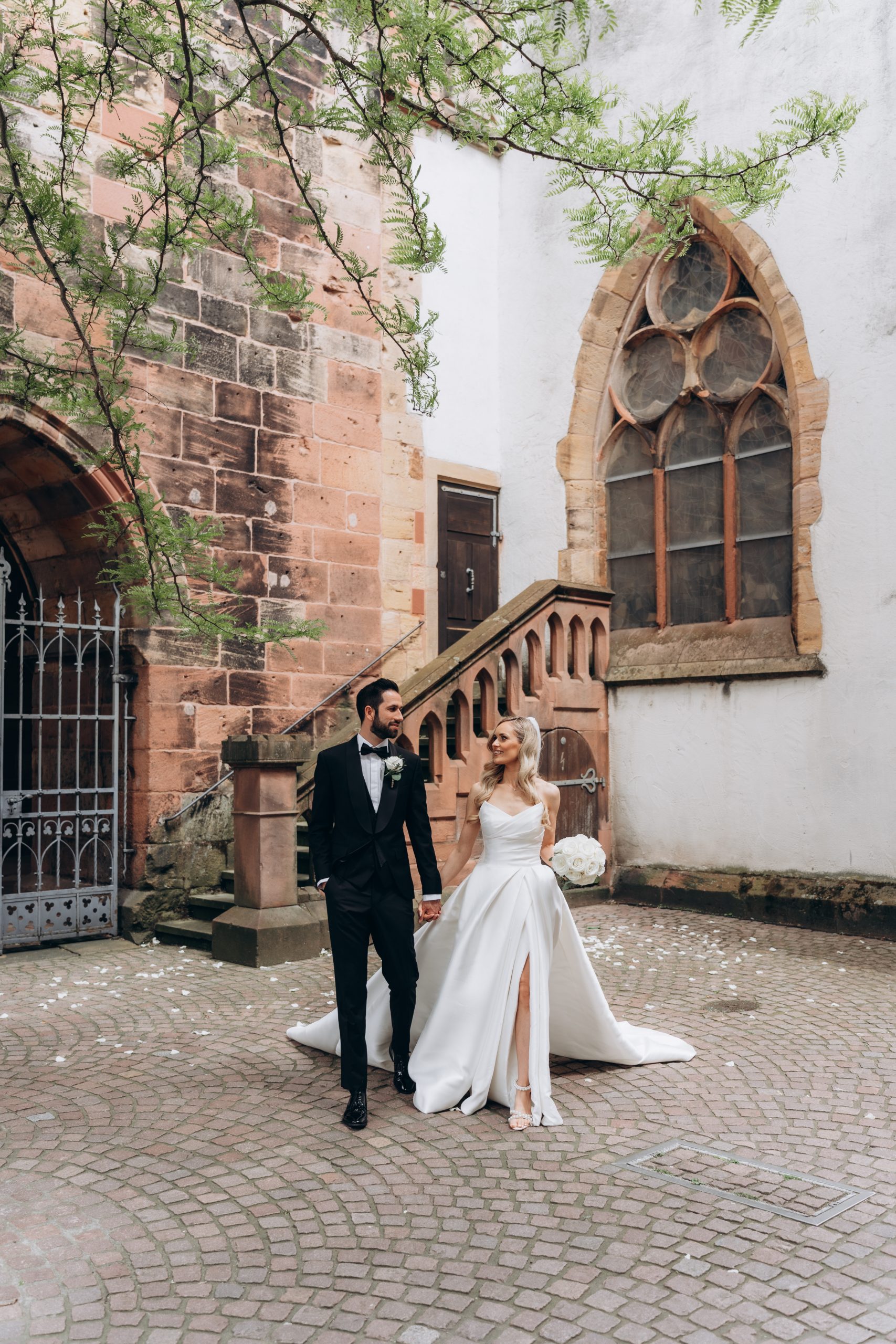 Von dort ging es weiter zur Stiftskirche in Landau. Die kirchliche Trauung war klassisch, emotional und voller echter Momente. Zwischen hohen Mauern und festlicher Atmosphäre gaben sich die beiden ihr Ja-Wort – begleitet von Familie und engen Freunden.