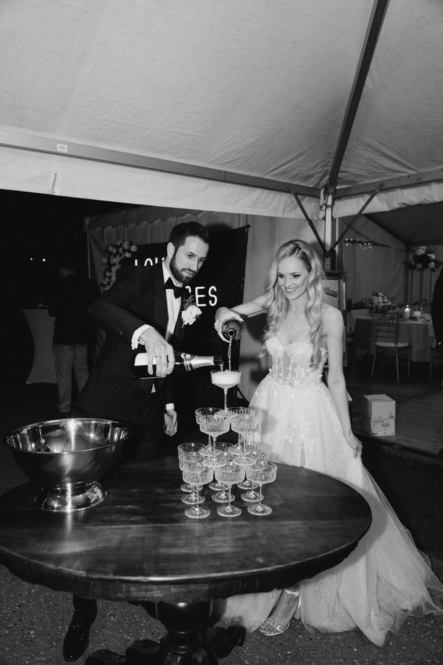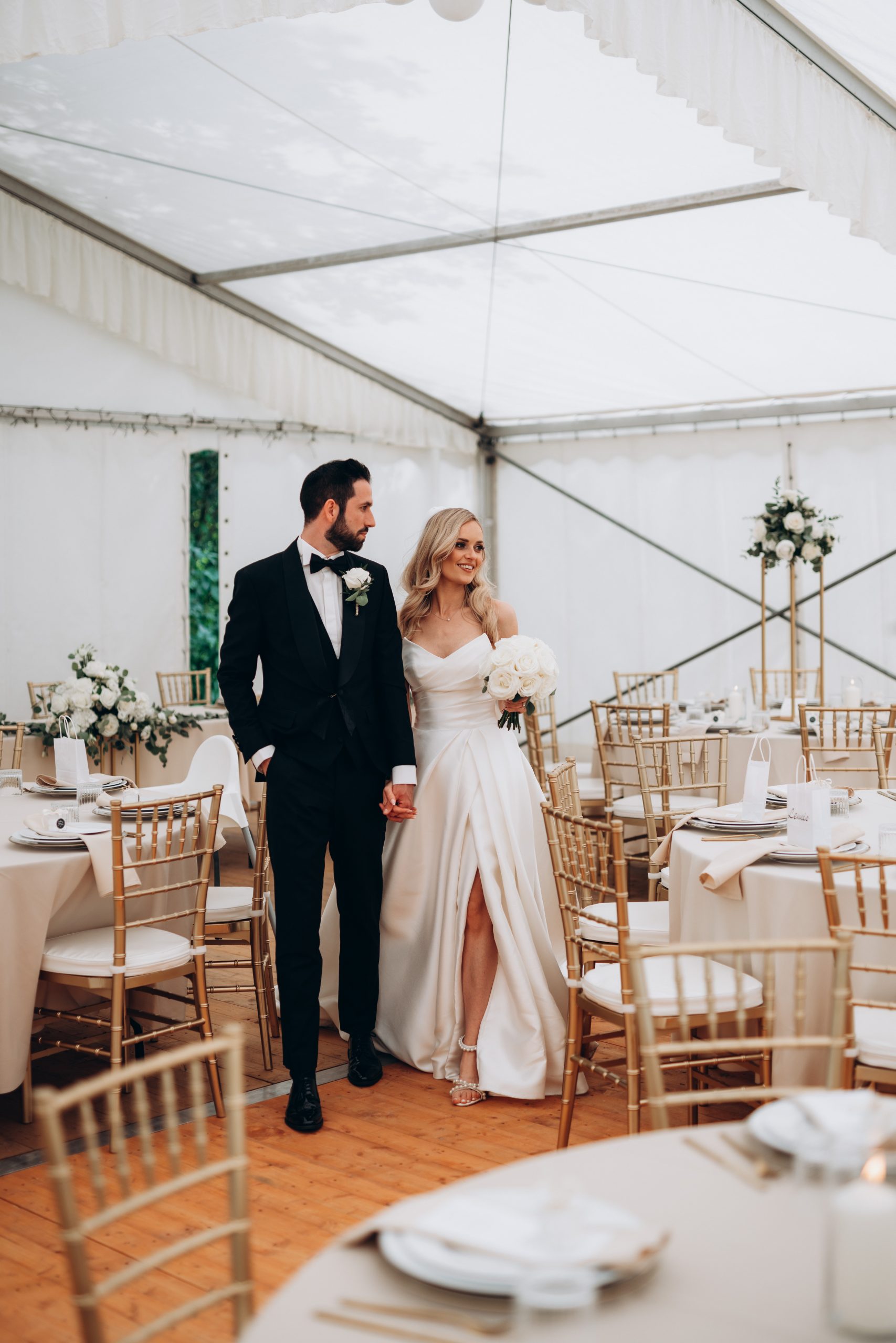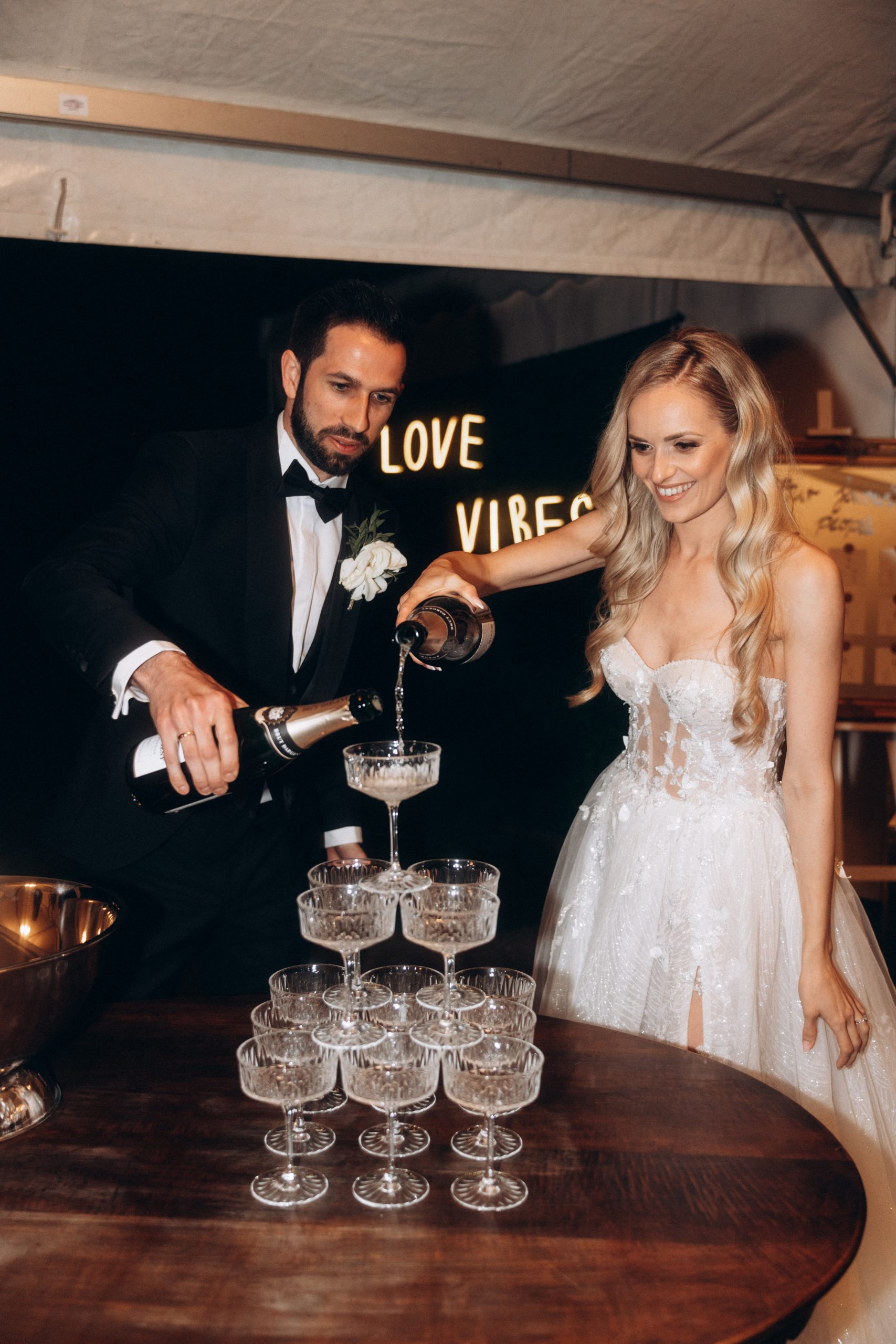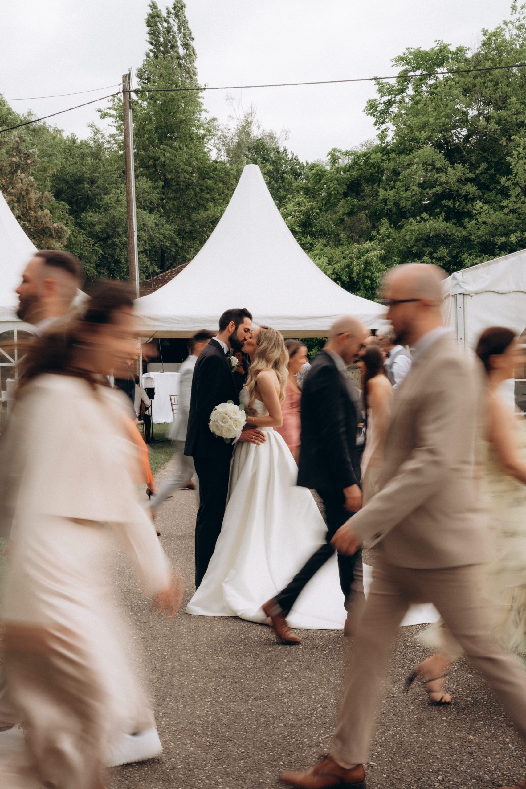 Nach der Zeremonie verlagerte sich der Tag nach Neuburg am Rhein. Dort hatten Franziska & Thomas auf einem privaten Grundstück ein liebevoll dekoriertes Partyzelt aufgebaut. Statt klassischer Eventlocation entschieden sie sich für eine Feier im Freien – persönlich, individuell und genau nach ihren Vorstellungen.