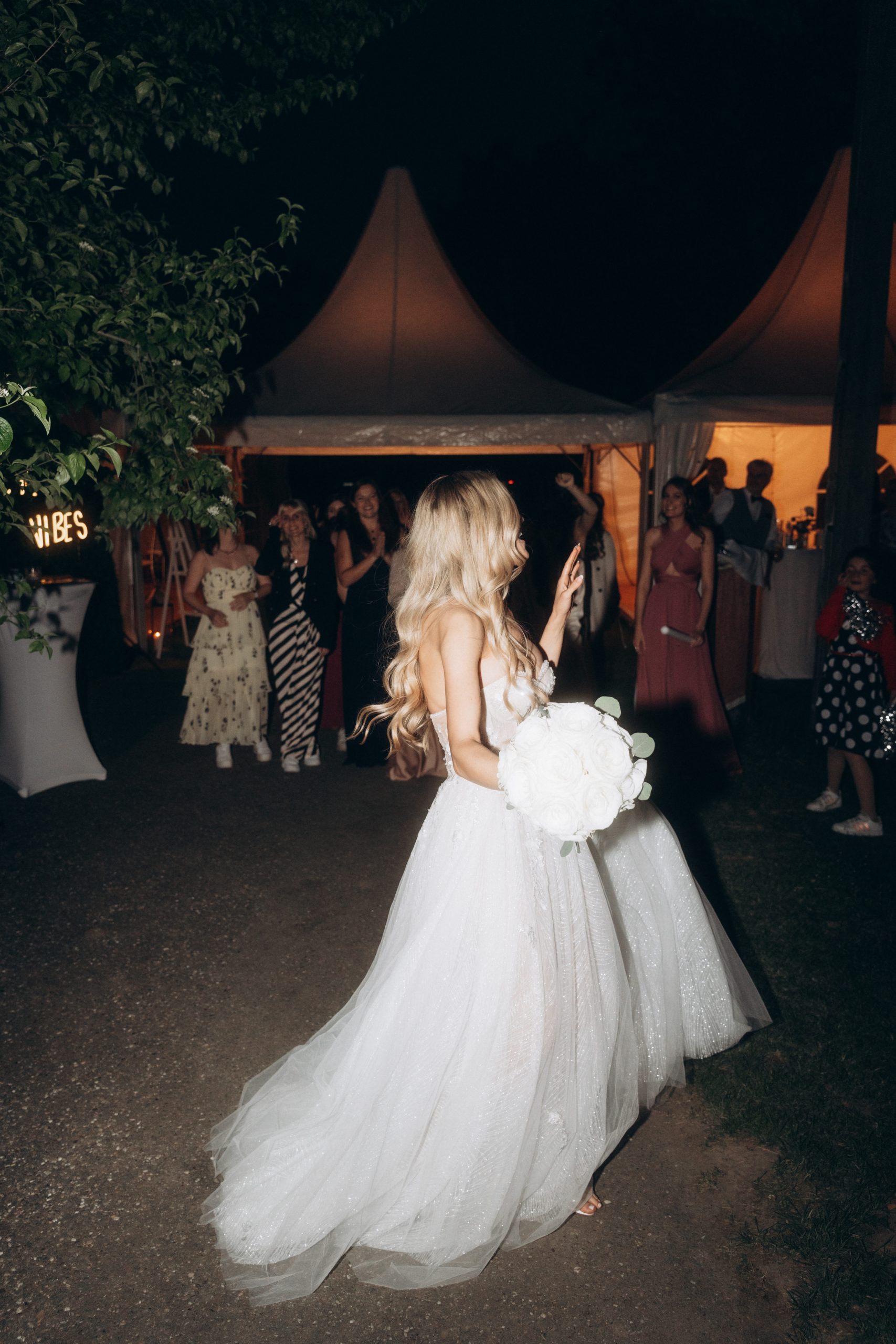 Die offene Umgebung, das Zelt, die Dekoration und die Livemusik vor Ort schufen eine lockere, warme Atmosphäre. Gäste bewegten sich frei über das Gelände, Kinder spielten, Gespräche entstanden, Gläser klirrten – alles wirkte ungezwungen und lebendig.