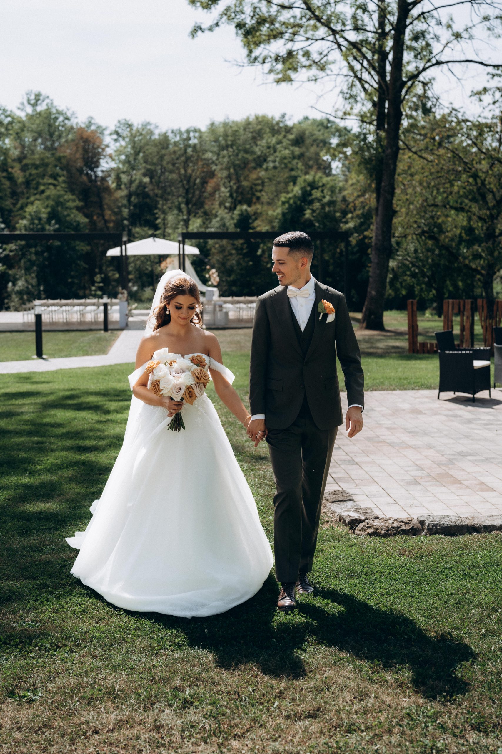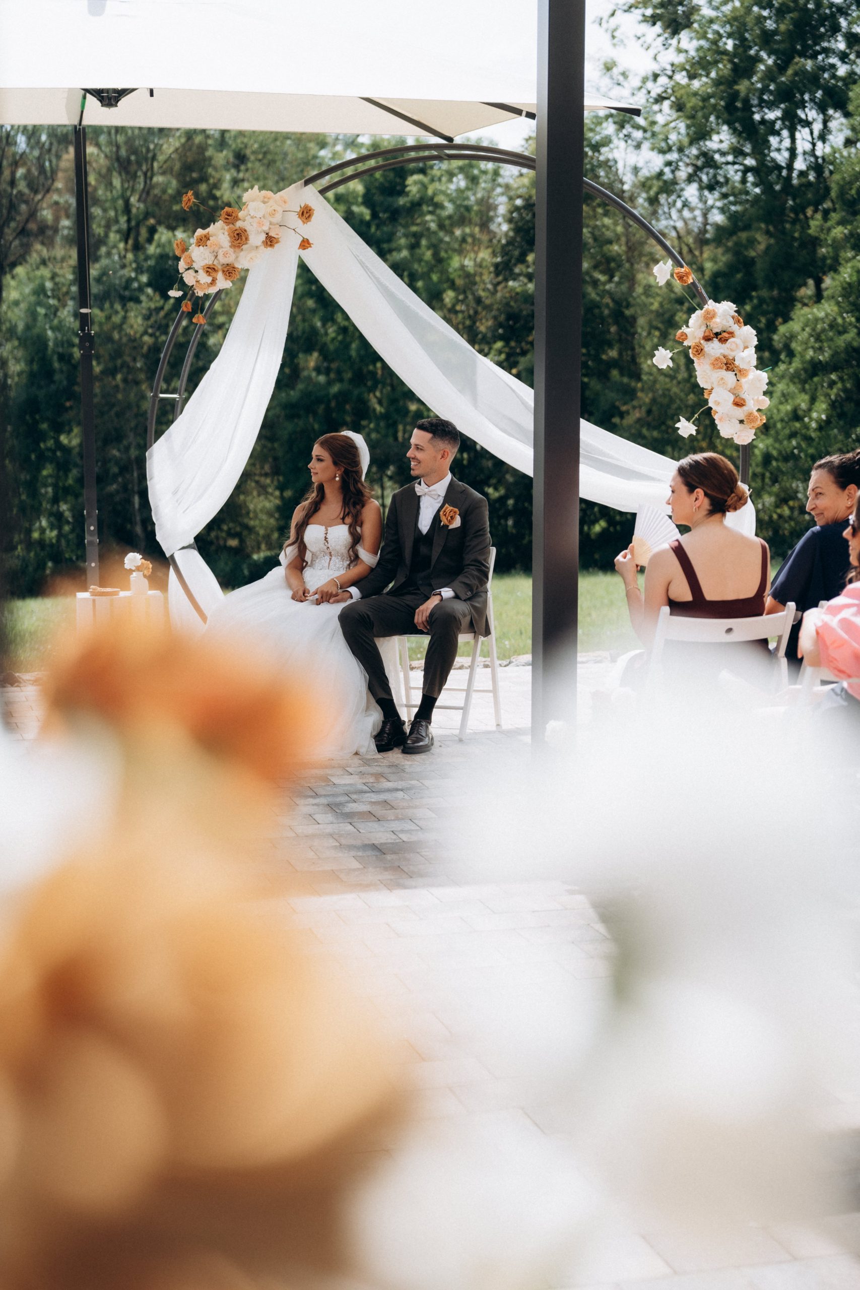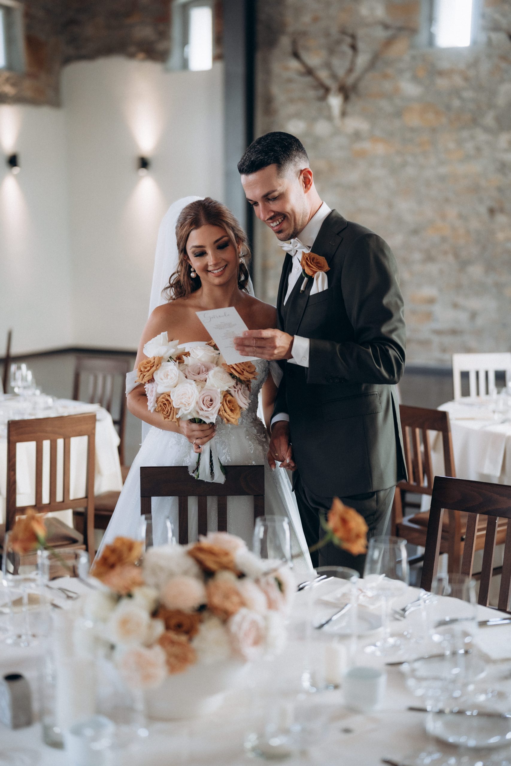 Der Tag begann mit einem First Look in ruhiger Umgebung, bevor die freie Trauung im Außenbereich stattfand. Umgeben von der weitläufigen Gartenanlage und dem besonderen Charakter des Anwesens entstand eine persönliche und emotionale Zeremonie.