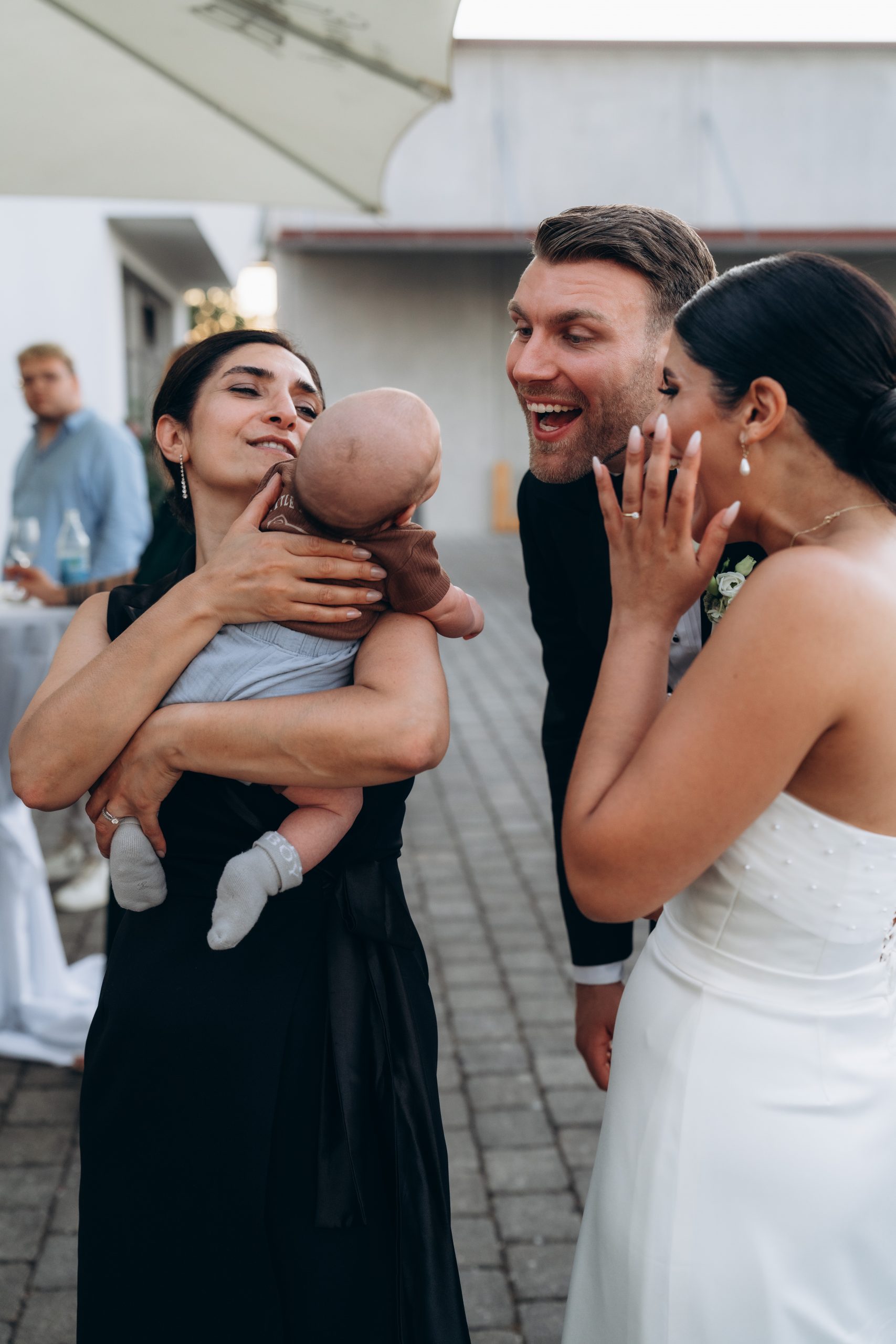 Die Emotionen standen im Mittelpunkt – ehrliche Blicke, Umarmungen, spontane Momente. Gerade das offene Gelände rund um das Weingut Konzmann in Kernen schafft Raum für Begegnung und Bewegung. Gäste verteilen sich, Gespräche entstehen, Kinder spielen – alles wirkt leicht.