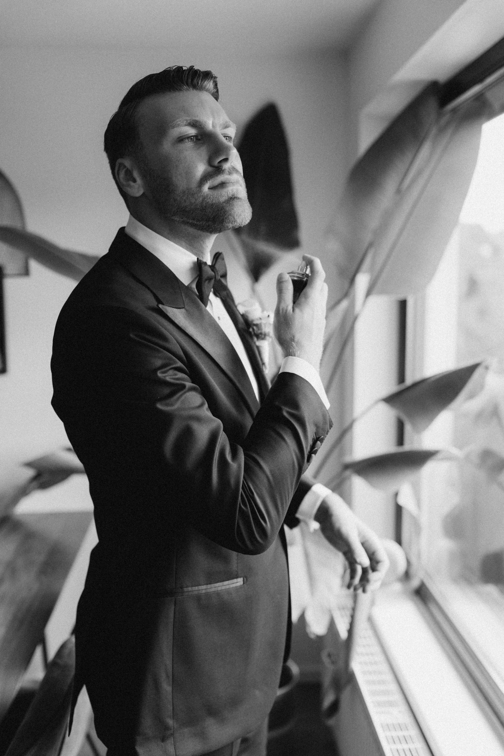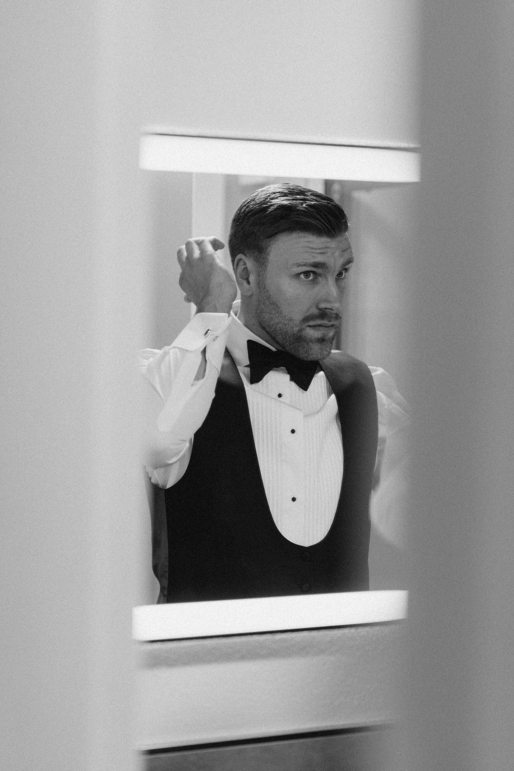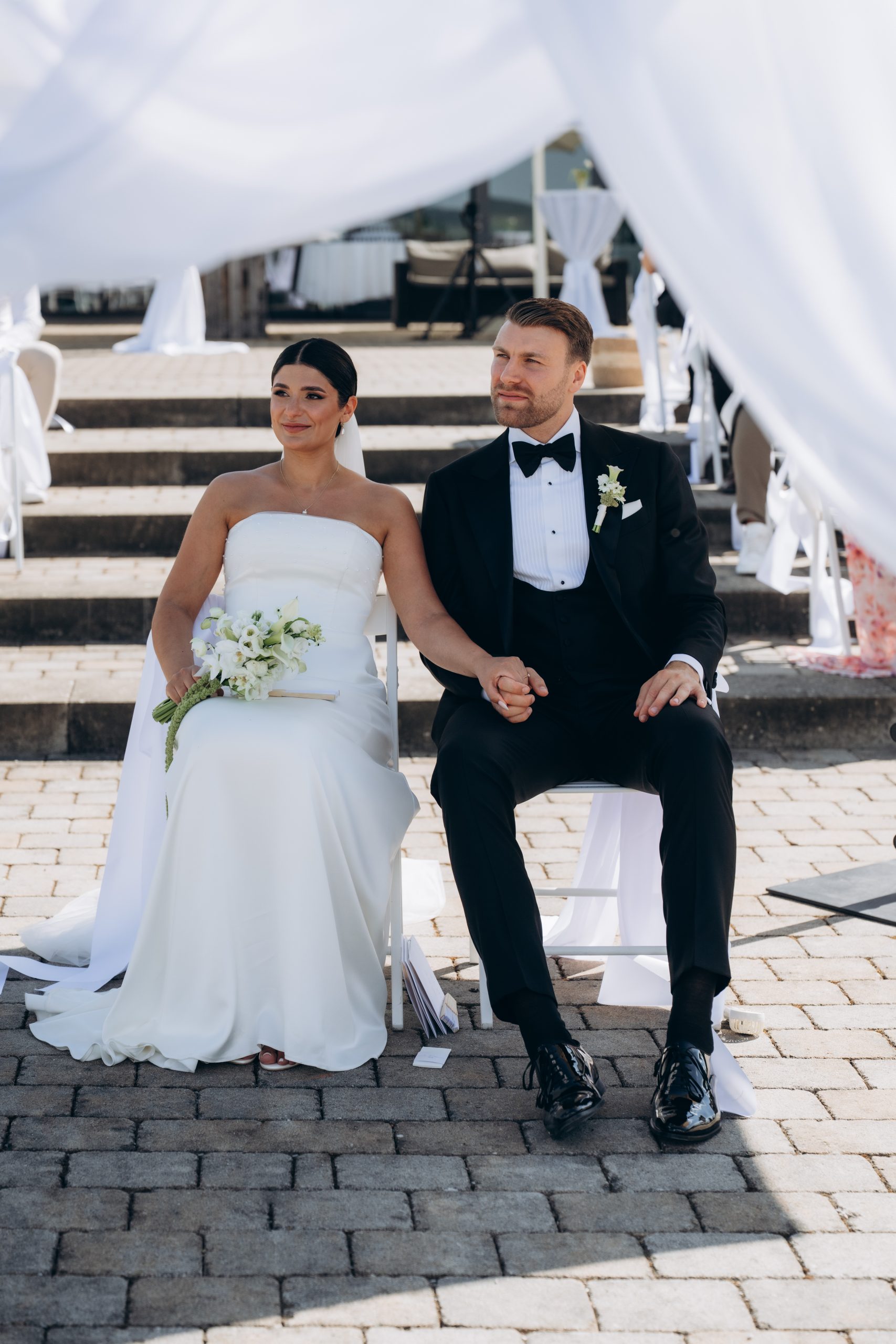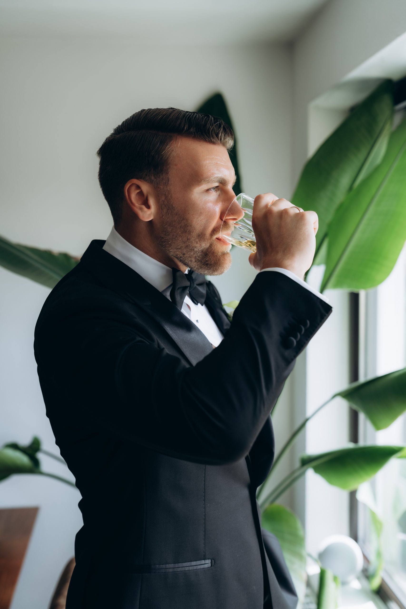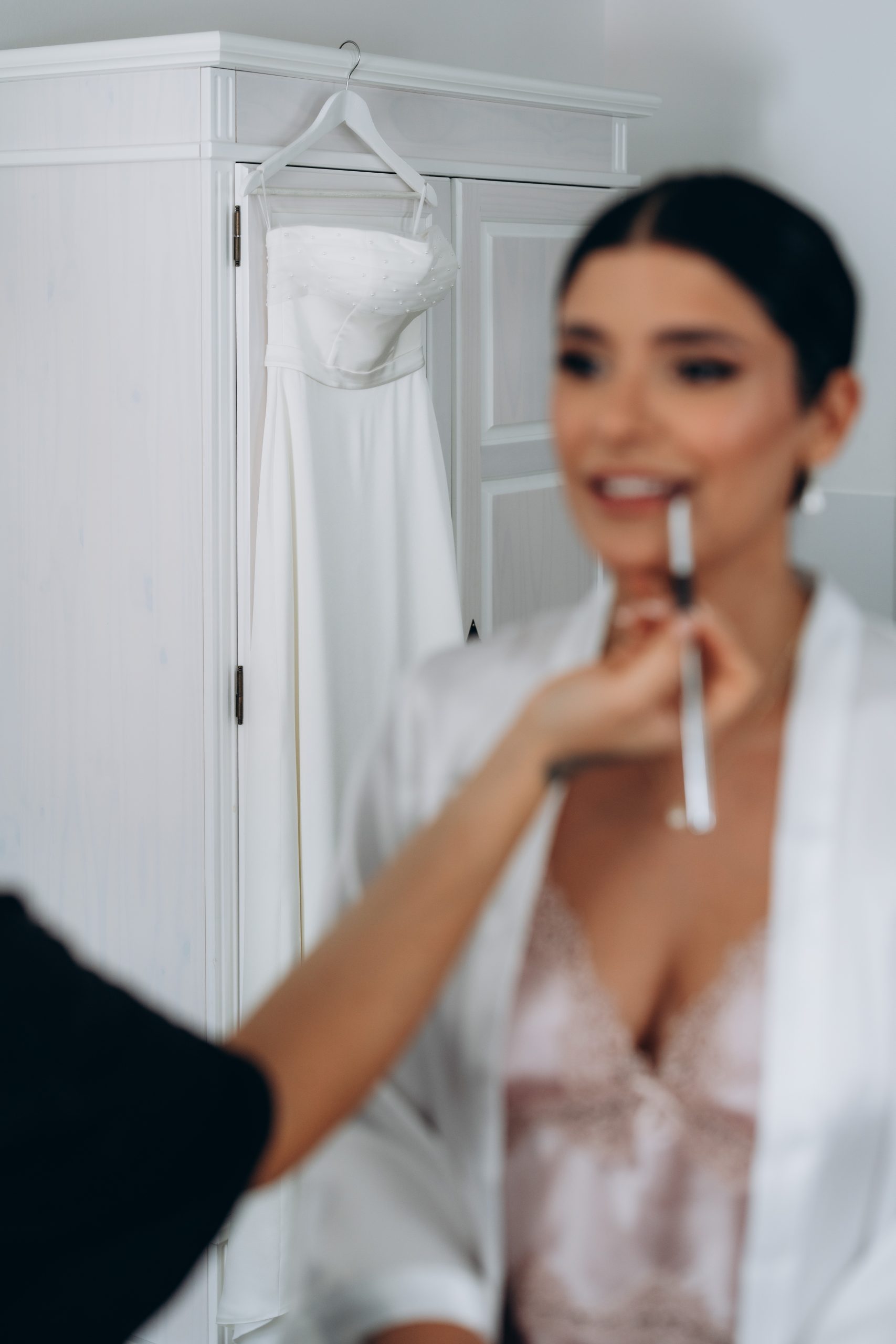 Der Tag begann getrennt. Während Marcel sich in entspannter Atmosphäre vorbereitete, entstanden natürliche Momentaufnahmen und stilvolle Detailbilder von Anzug und Accessoires. Anschließend ging es weiter zu Alena ins Hotel, wo Kleid, Schmuck und letzte Handgriffe dokumentiert wurden.