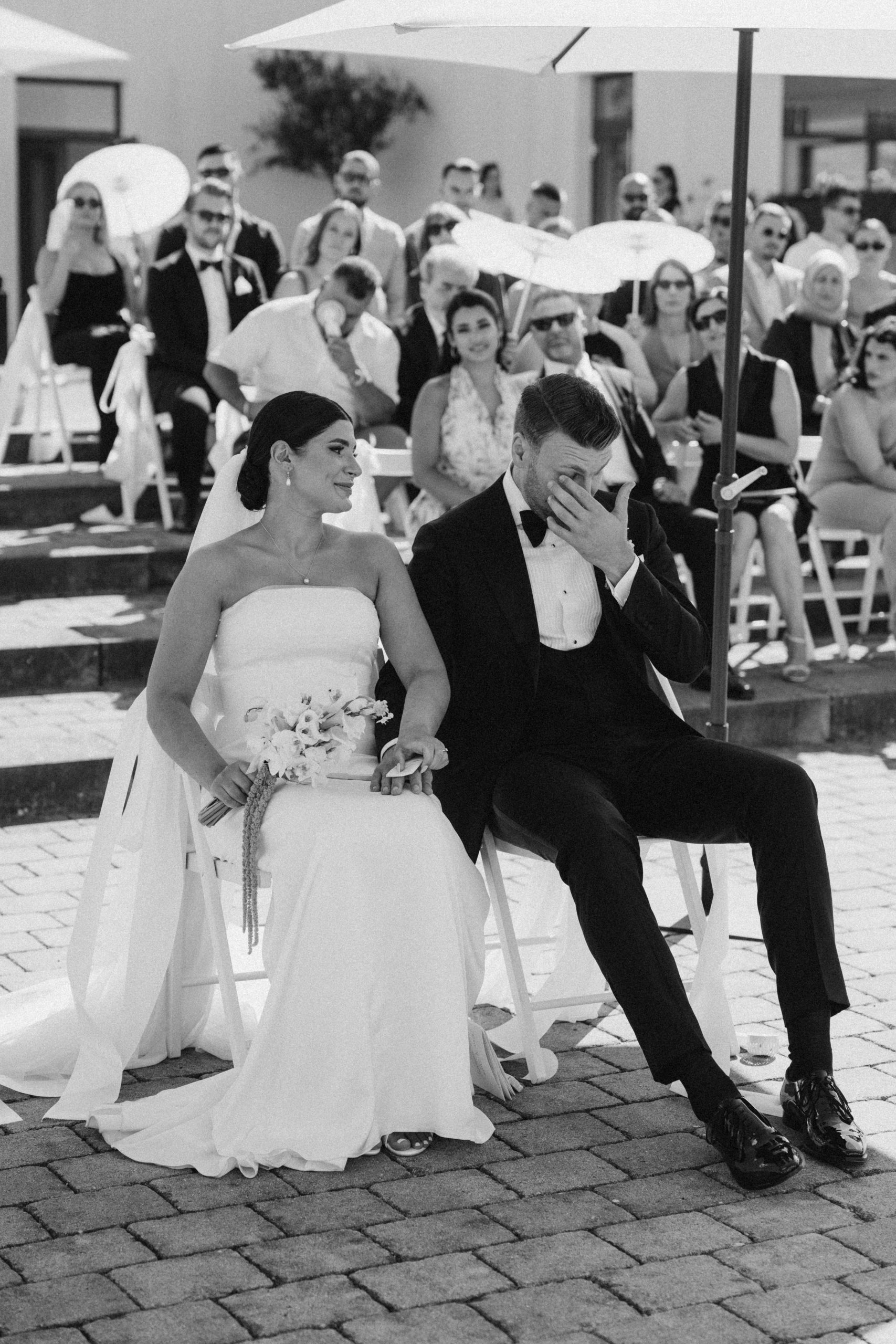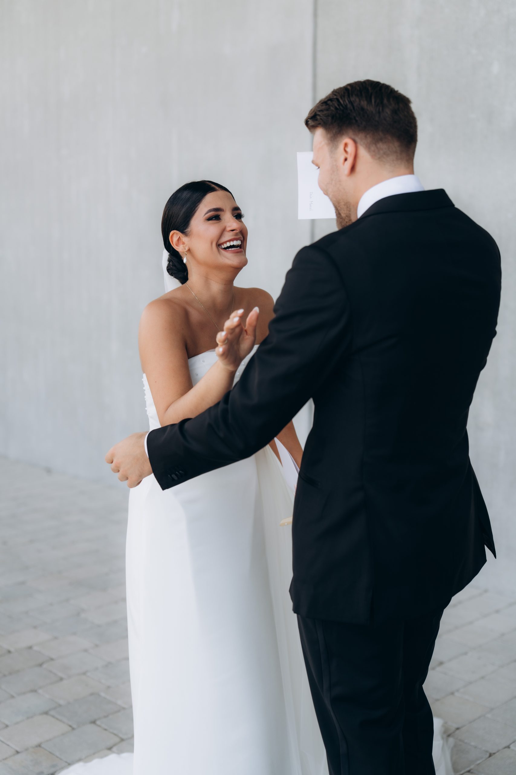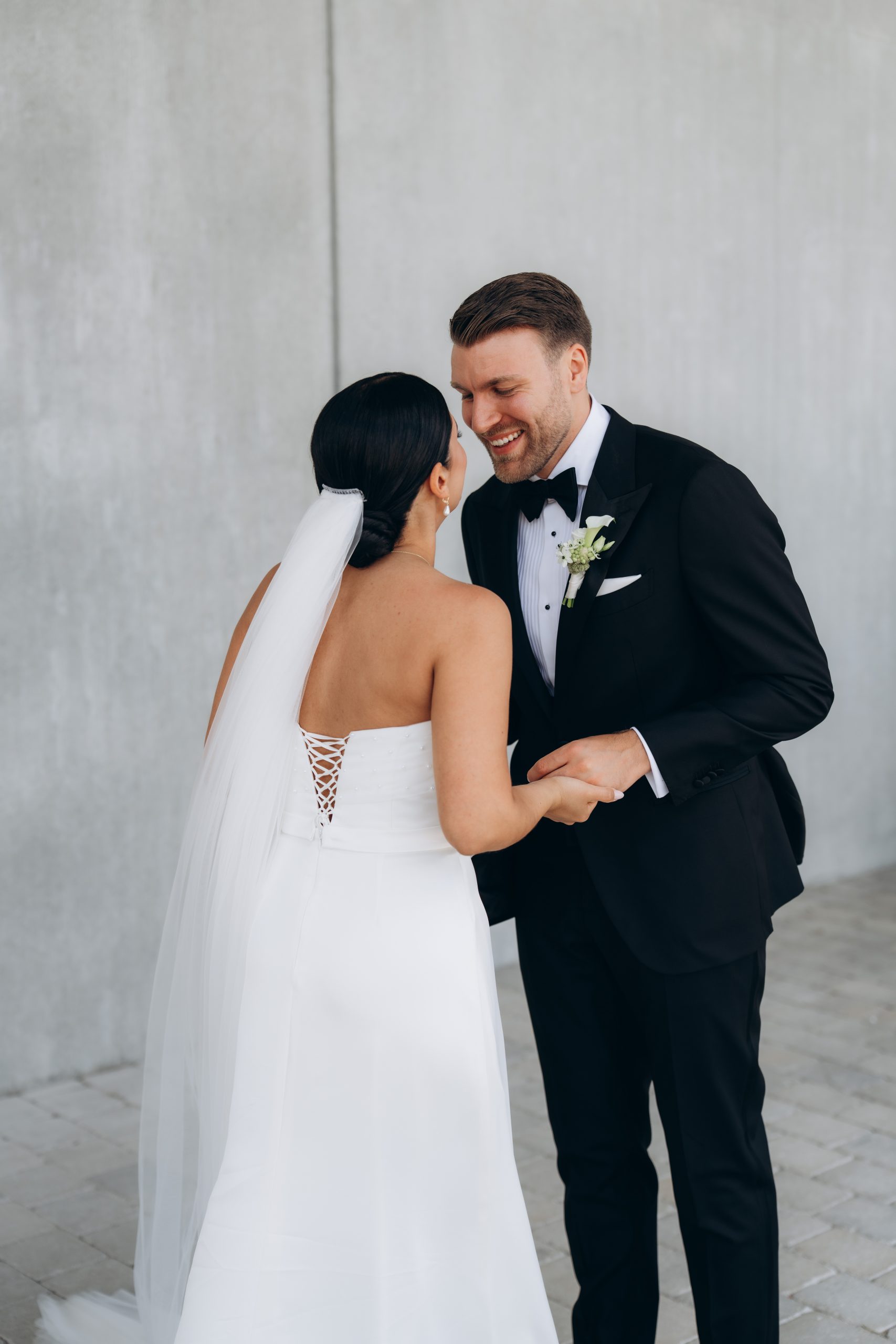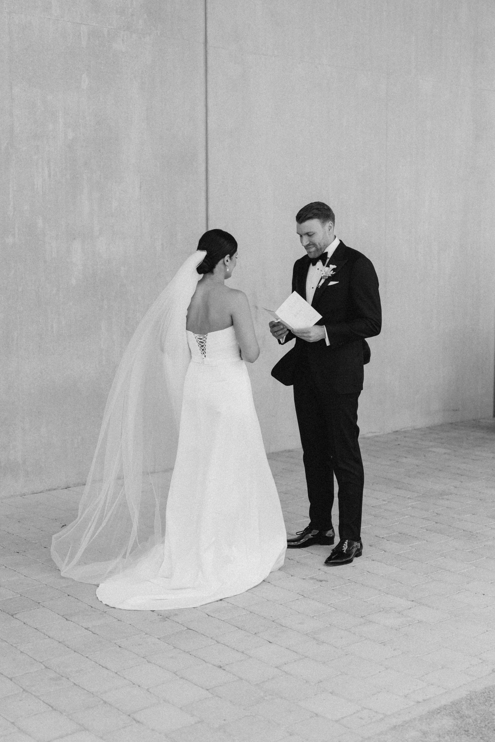 Nach der Ankunft trafen sich die beiden zu einem First Look. Ohne Publikum, ohne Ablenkung. Direkt im Anschluss zogen sie sich bewusst zurück und lasen sich ihre persönlichen Vows in privater Atmosphäre vor.