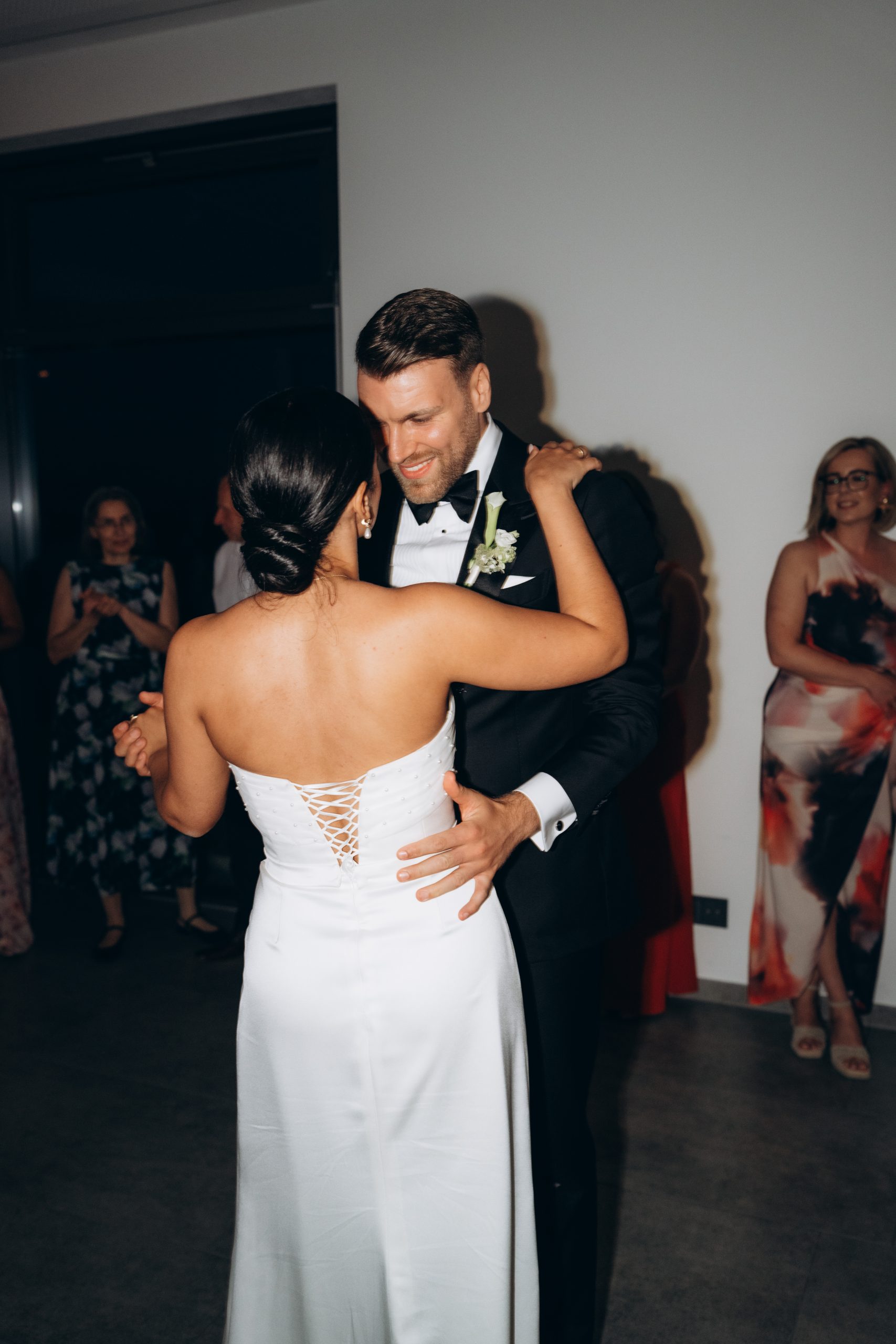 Der Tortenanschnitt wurde nicht nebenbei, sondern bewusst musikalisch inszeniert. Energie, Applaus und spürbare Freude prägten diesen Moment. Der anschließende Eröffnungstanz leitete den Abend ein, bevor sich die Feier zu einer lebendigen Party entwickelte.