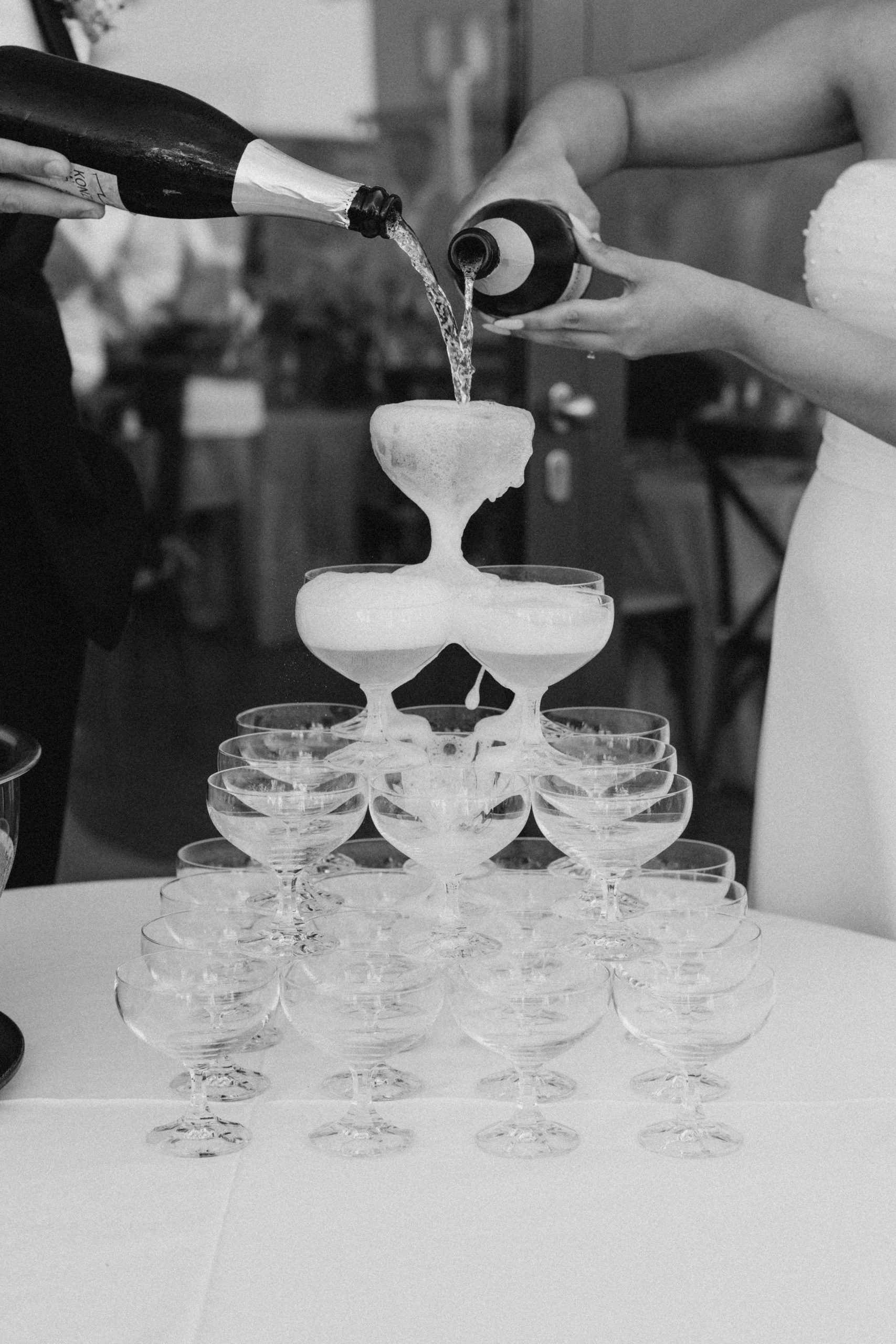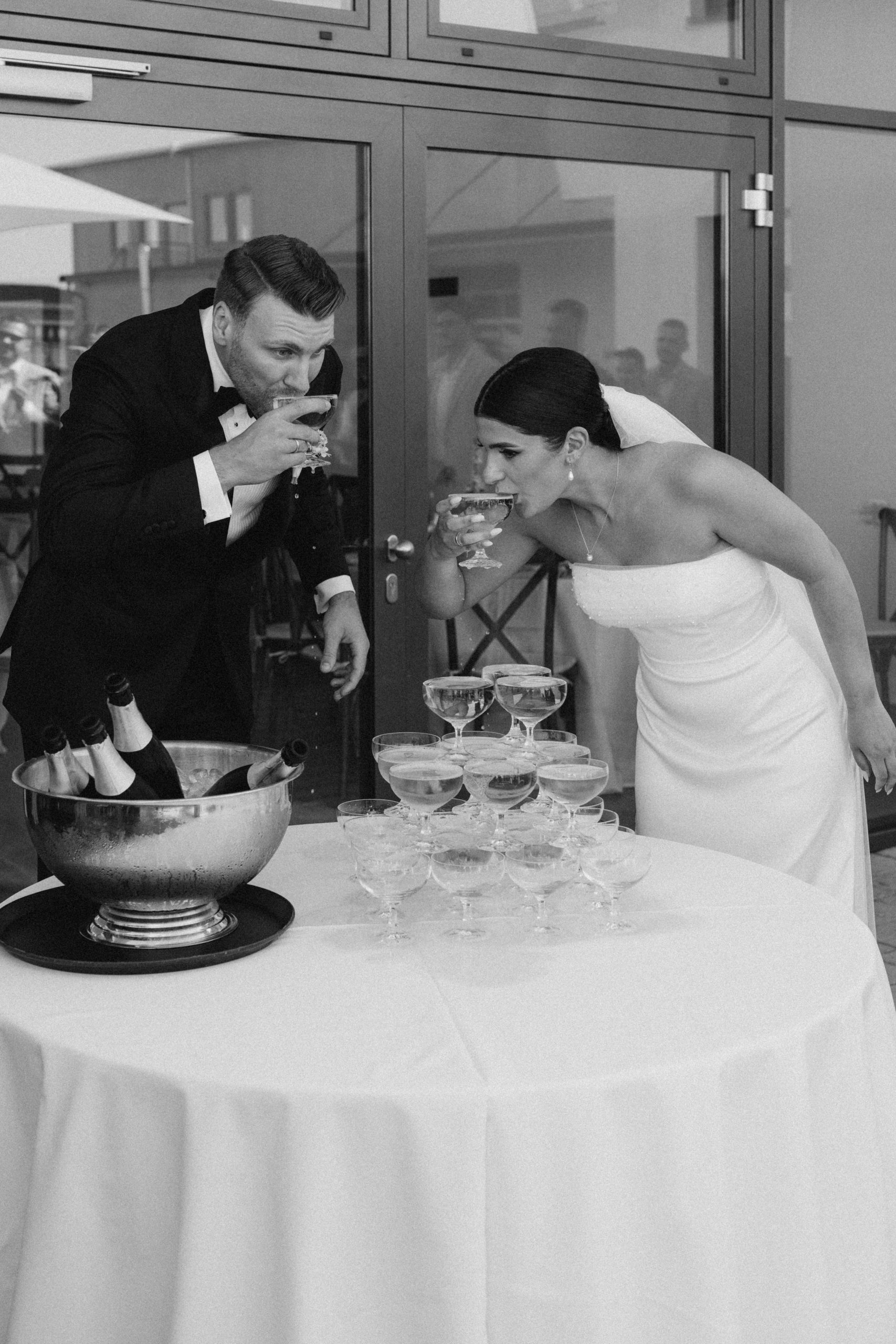 Der Sektempfang startete mit einem Sekt-tower, der sofort Energie in den Nachmittag brachte. Begleitet wurde dieser Teil von einem Saxophonisten, der bis in die Feier hinein für durchgehende Stimmung sorgte – ein modernes, dynamisches Konzept, das immer häufiger bei Hochzeiten im Remstal zu sehen ist.