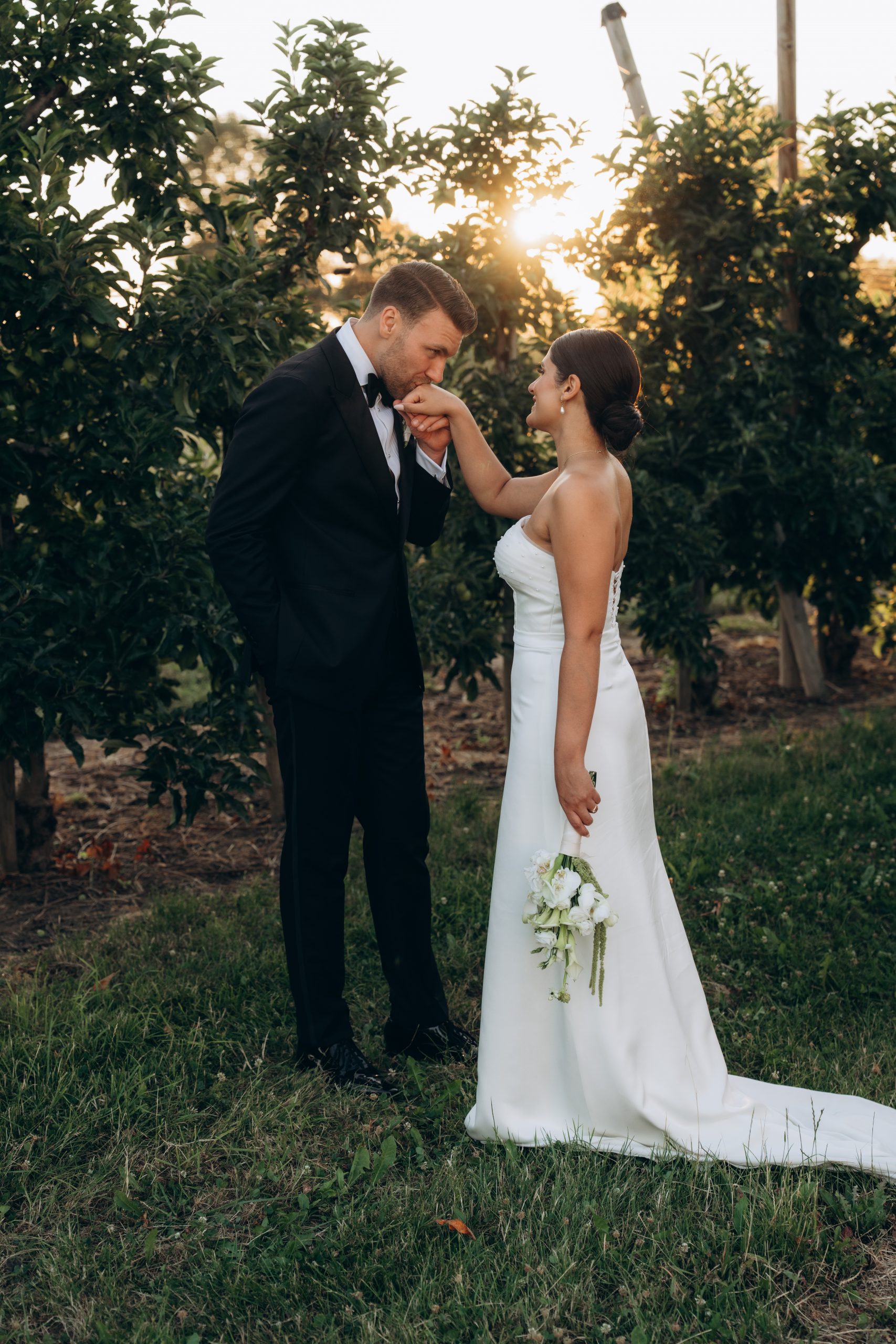 Einer der größten Vorteile einer Hochzeit im Weingut Konzmann in Kernen ist das Abendlicht zwischen den Weinbergen. Die Linienführung der Reben erzeugt Tiefe und Struktur, während das warme Licht der Golden Hour eine besonders weiche, zeitlose Bildwirkung schafft.